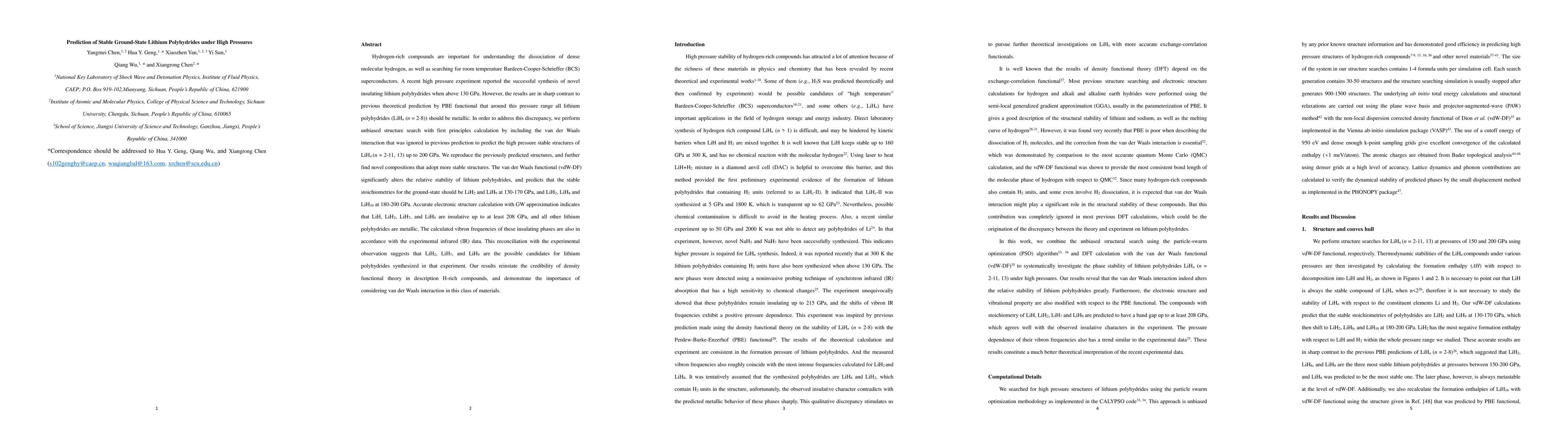 This study uses first-principles calculations, including van der Waals interactions, to predict stable lithium polyhydrides under high pressures, resolving discrepancies between experimental findings and previous theoretical predictions. The results suggest that LiH2, LiH7, and LiH9 are insulating and consistent with experimental data, highlighting the importance of van der Waals interactions in accurately describing hydrogen-rich compounds.