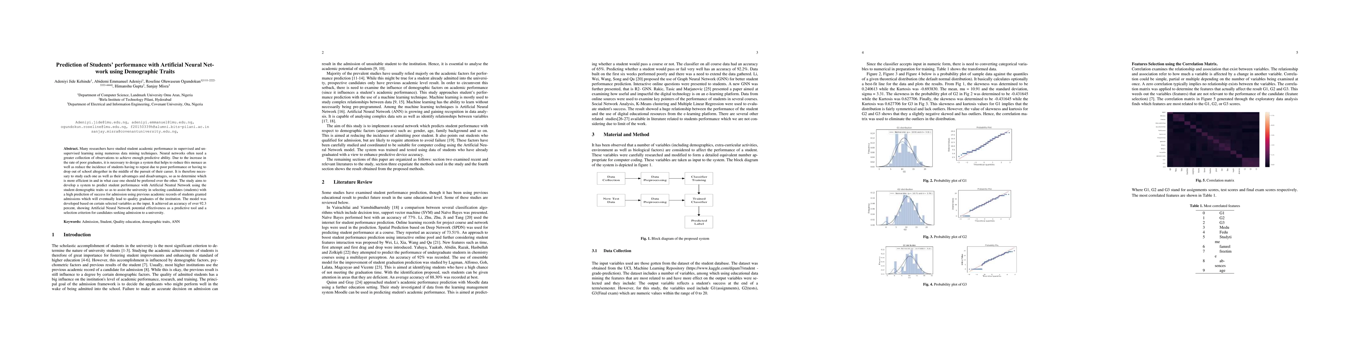 A machine learning approach was used to predict student performance