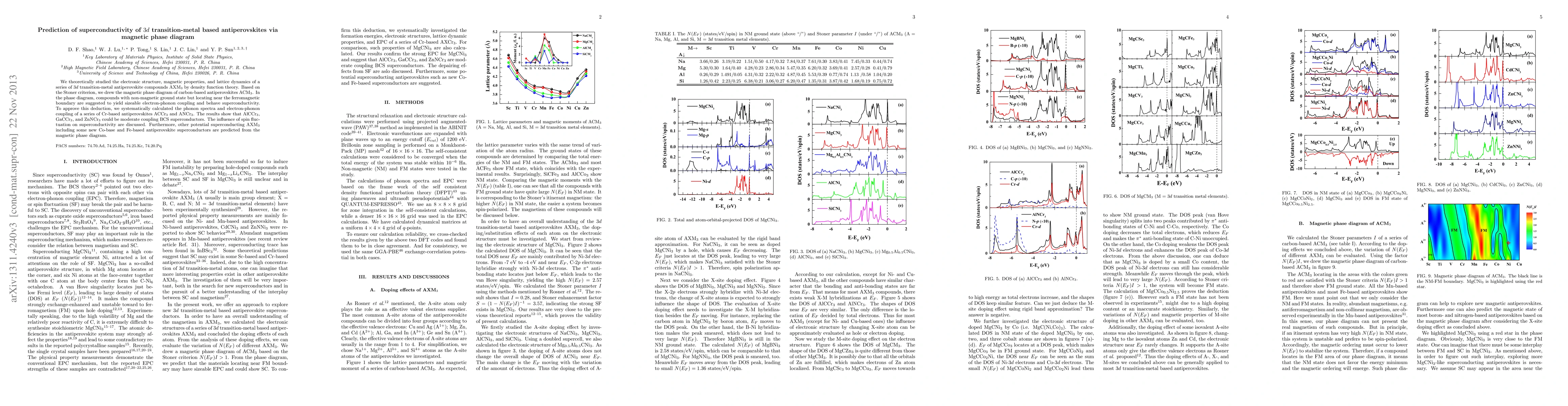 We theoretically studied the electronic structure, magnetic properties, and lattice dynamics of a series of $3d$ transition-metal antiperovskite compounds AXM$_{3}$ by density function theory. Based on the Stoner criterion, we drew the magnetic phase diagram of carbon-based antiperovskites ACM$_{3}$. In the phase diagram, compounds with non-magnetic ground state but locating near the ferromagnetic boundary are suggested to yield sizeable electron-phonon coupling and behave superconductivity. To approve this deduction, we systematically calculated the phonon spectra and electron-phonon coupling of a series of Cr-based antiperovskites ACCr$_{3}$ and ANCr$_{3}$. The results show that AlCCr$_{3}$, GaCCr$_{3}$, and ZnNCr$_{3}$ could be moderate coupling BCS superconductors. The influence of spin fluctuation on superconductivity are discussed. Furthermore, other potential superconducting AXM$_{3}$ including some new Co-base and Fe-based antiperovskite superconductors are predicted from the magnetic phase diagram.