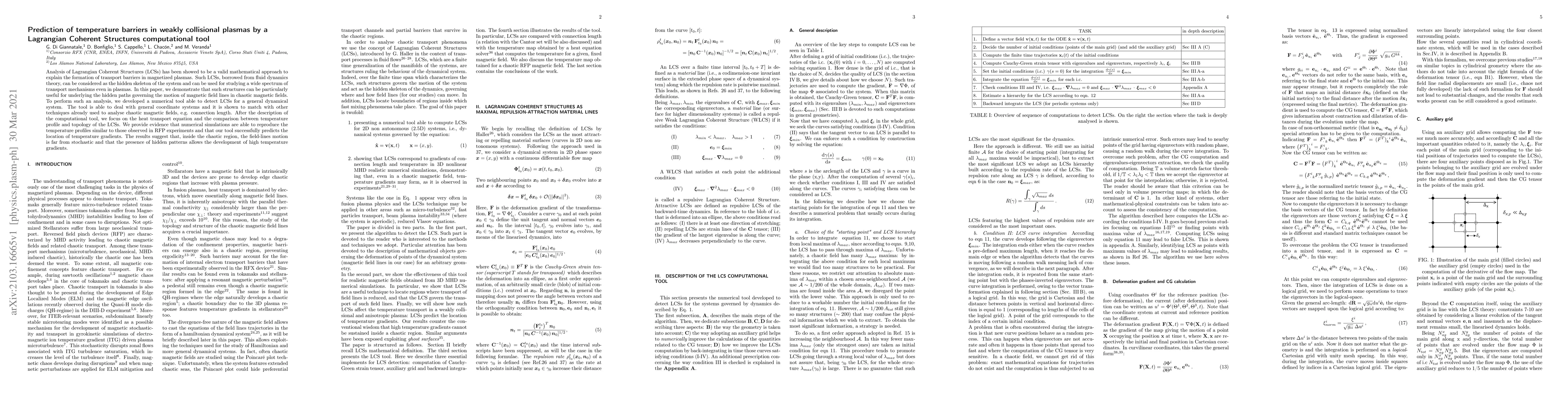 This paper develops a computational tool to identify Lagrangian Coherent Structures (LCSs) in weakly collisional plasmas, demonstrating their utility in predicting temperature barriers and magnetic field line motion in chaotic magnetic fields. The tool successfully matches with existing methods and predicts temperature gradients, indicating non-stochastic field-line motion within chaotic regions.
