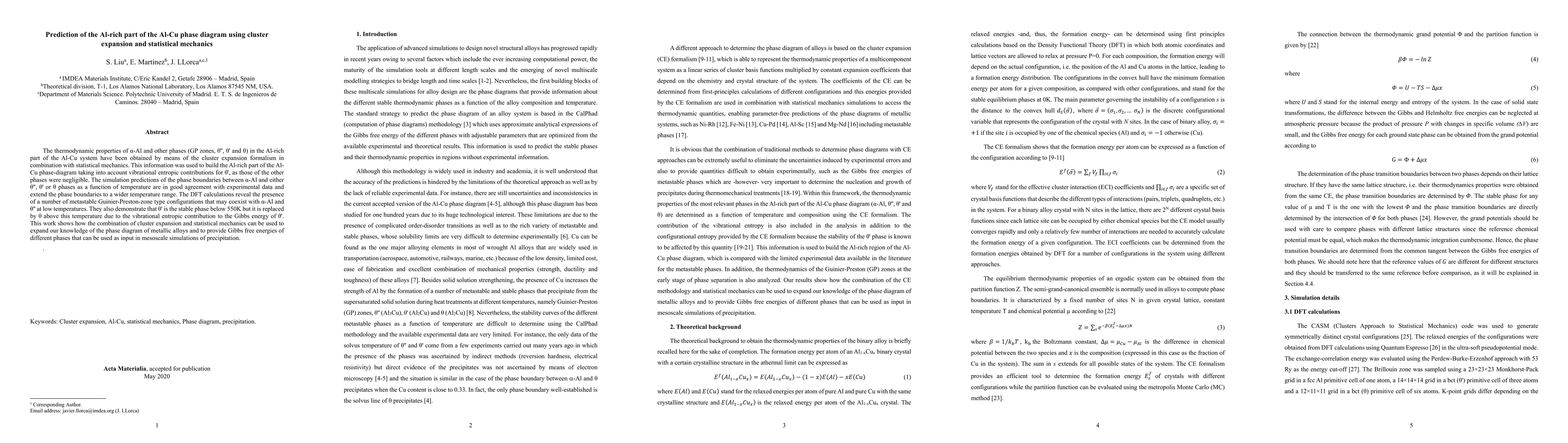 This paper uses cluster expansion and statistical mechanics to predict the Al-rich part of the Al-Cu phase diagram, showing good agreement with experimental data and revealing metastable configurations and phase stability transitions. The method extends the phase boundaries and provides Gibbs free energies for mesoscale simulations.