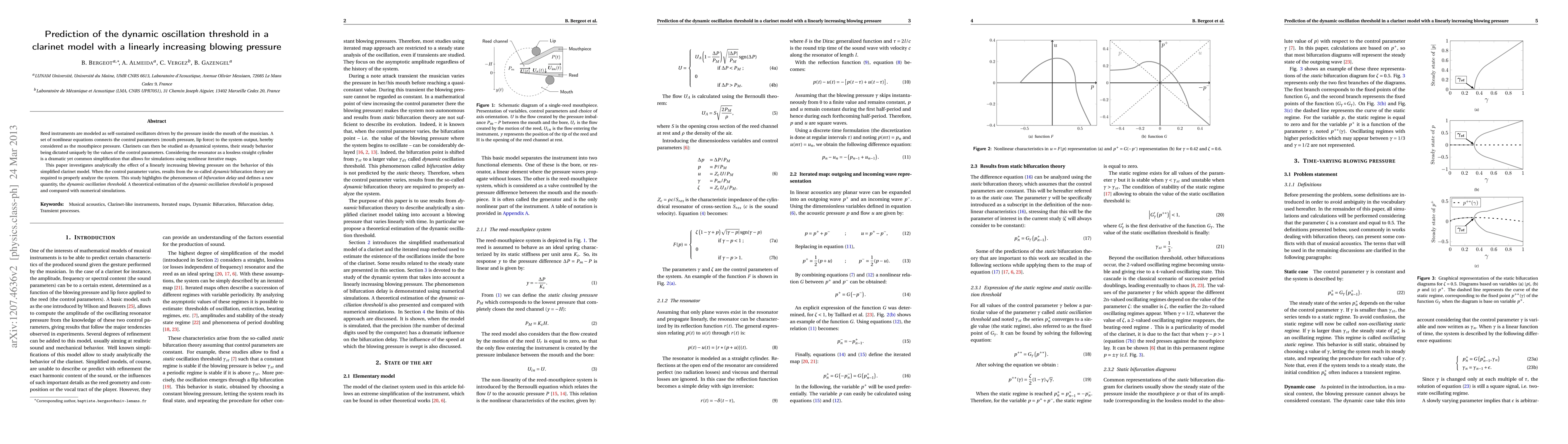 This paper models a clarinet as a self-sustained oscillator driven by varying mouth pressure and analyzes its dynamic behavior using nonlinear equations. It introduces the concept of dynamic oscillation threshold and compares theoretical estimations with numerical simulations.