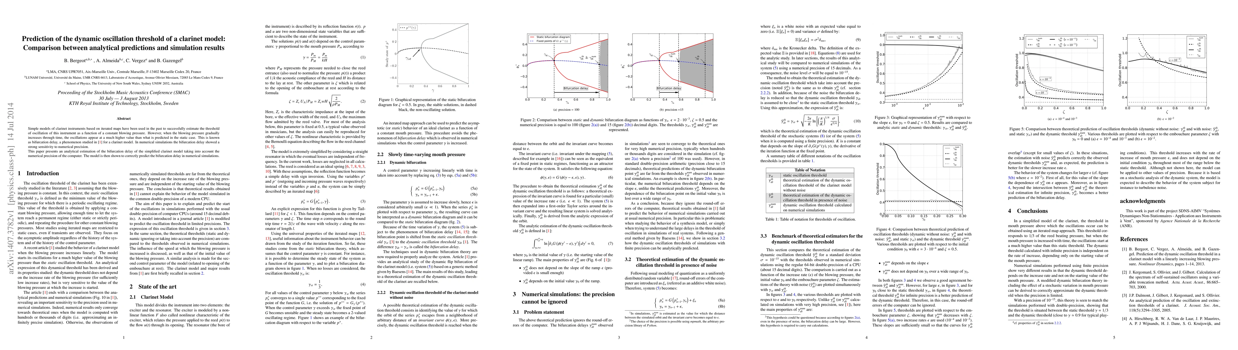 This paper compares analytical predictions of a clarinet's oscillation threshold with simulation results, revealing that dynamic changes in blowing pressure cause a bifurcation delay, where oscillations occur at a higher pressure than static predictions. Numerical simulations show strong sensitivity to precision in predicting this delay.