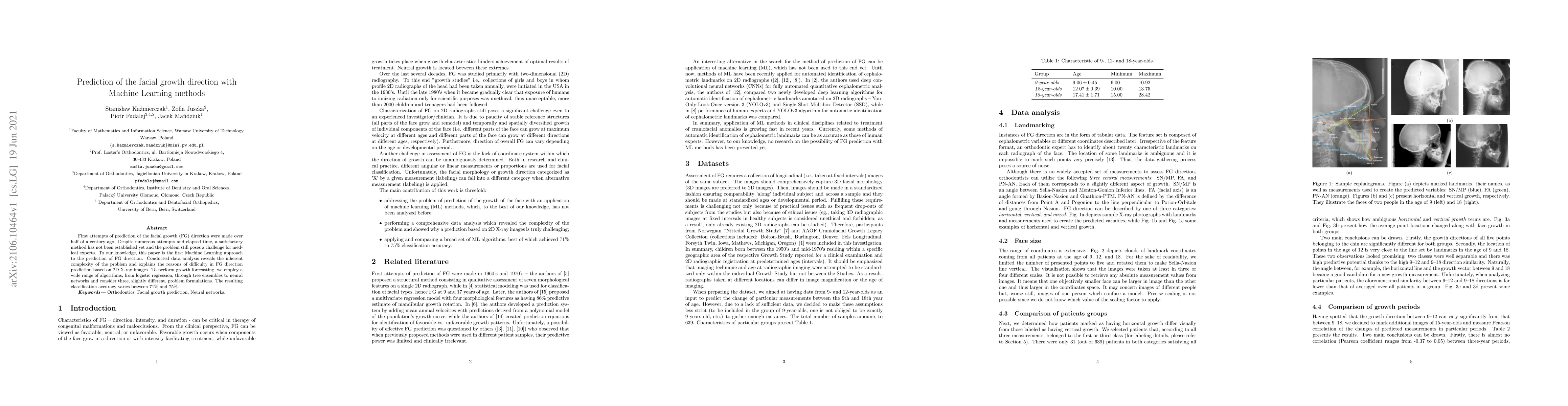 First attempts of prediction of the facial growth (FG) direction were made over half of a century ago. Despite numerous attempts and elapsed time, a satisfactory method has not been established yet and the problem still poses a challenge for medical experts. To our knowledge, this paper is the first Machine Learning approach to the prediction of FG direction. Conducted data analysis reveals the inherent complexity of the problem and explains the reasons of difficulty in FG direction prediction based on 2D X-ray images. To perform growth forecasting, we employ a wide range of algorithms, from logistic regression, through tree ensembles to neural networks and consider three, slightly different, problem formulations. The resulting classification accuracy varies between 71% and 75%.