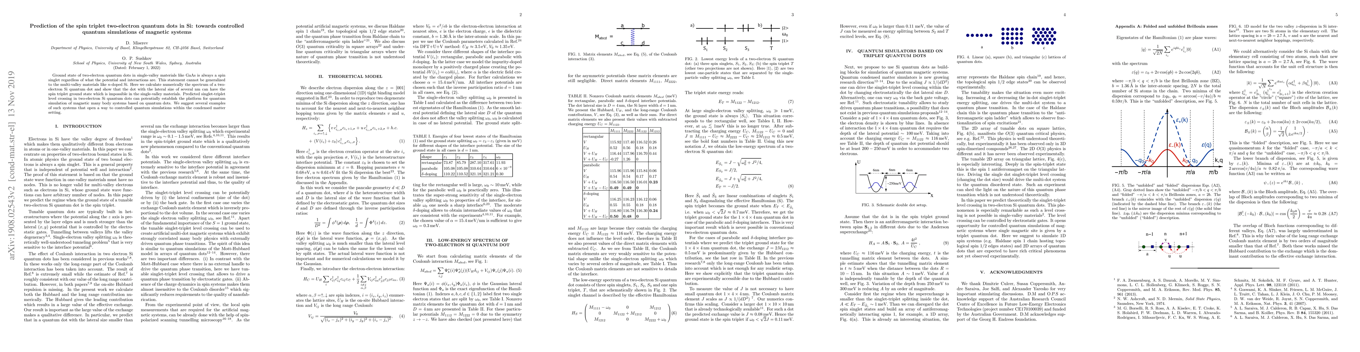 This paper predicts the existence of spin triplet ground states in two-electron quantum dots in silicon, unlike in single-valley materials like GaAs, and proposes that such quantum dots in silicon could serve as a platform for quantum simulations of magnetic systems. The findings suggest potential applications in controlled quantum simulations within condensed matter physics.
