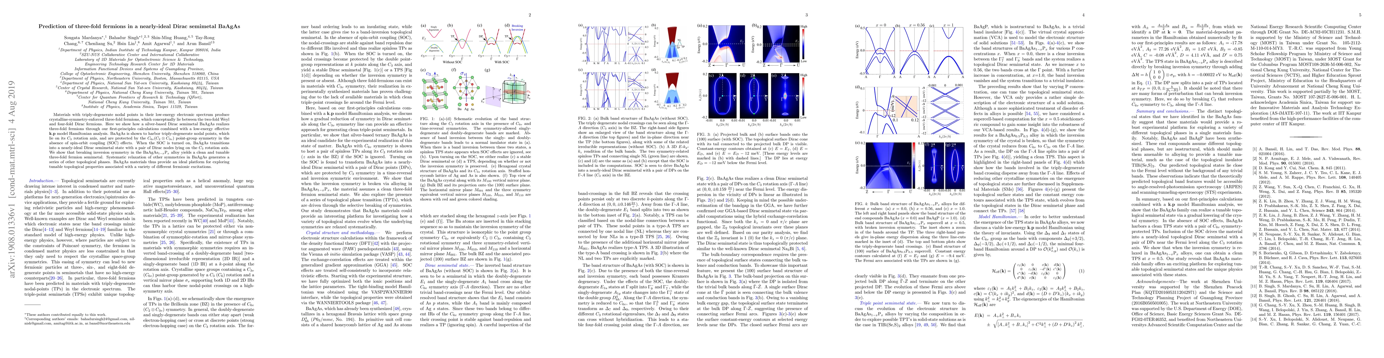 This paper demonstrates that BaAgAs, a silver-based Dirac semimetal, exhibits three-fold fermions through first-principles calculations and effective Hamiltonian analysis. It reveals how BaAgAs can transition into a tunable three-fold fermion semimetal state by breaking inversion symmetry, providing a platform for exploring diverse topological properties.