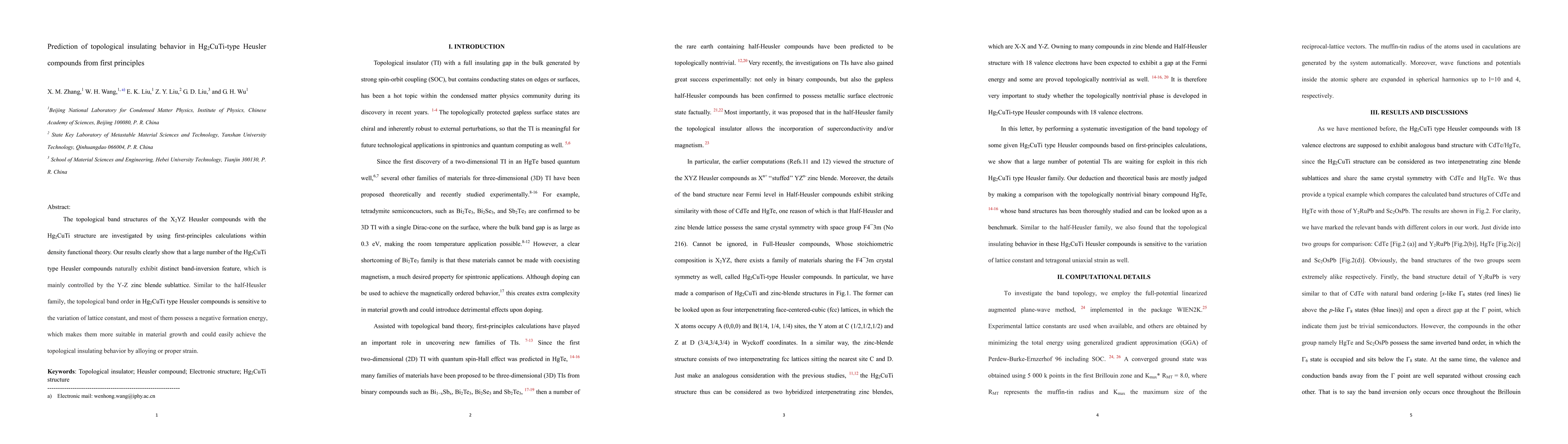 This study predicts that many Hg2CuTi-type Heusler compounds can exhibit topological insulating behavior due to a band-inversion feature controlled by the Y-Z zinc blende sublattice.