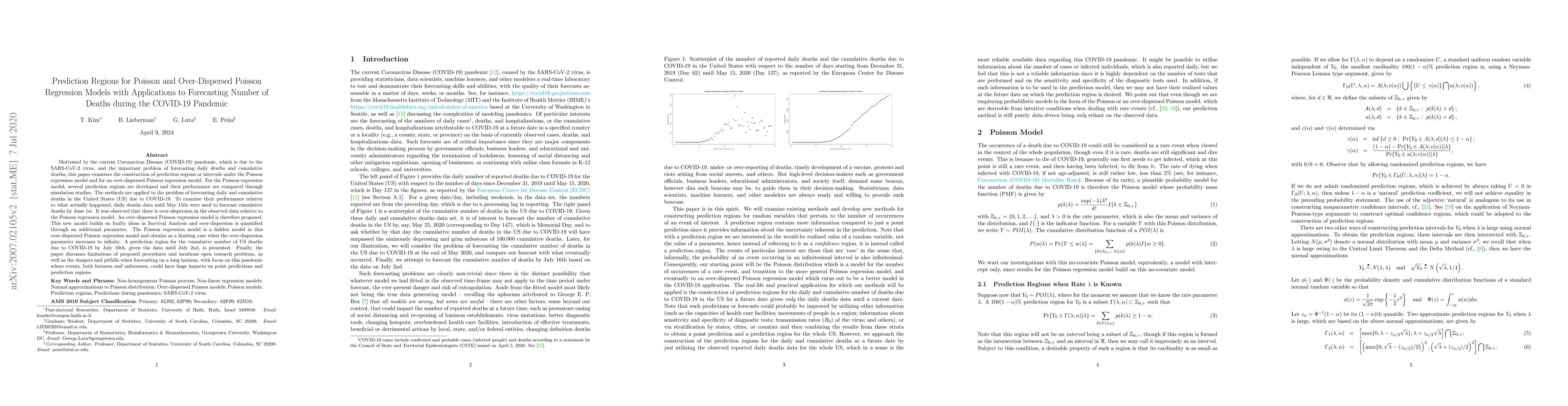 This paper develops prediction regions for both Poisson and over-dispersed Poisson regression models to forecast COVID-19 related deaths, applying these methods to US data and highlighting the importance of accounting for over-dispersion in such models. The study also discusses the challenges and uncertainties inherent in long-horizon forecasting during a pandemic.