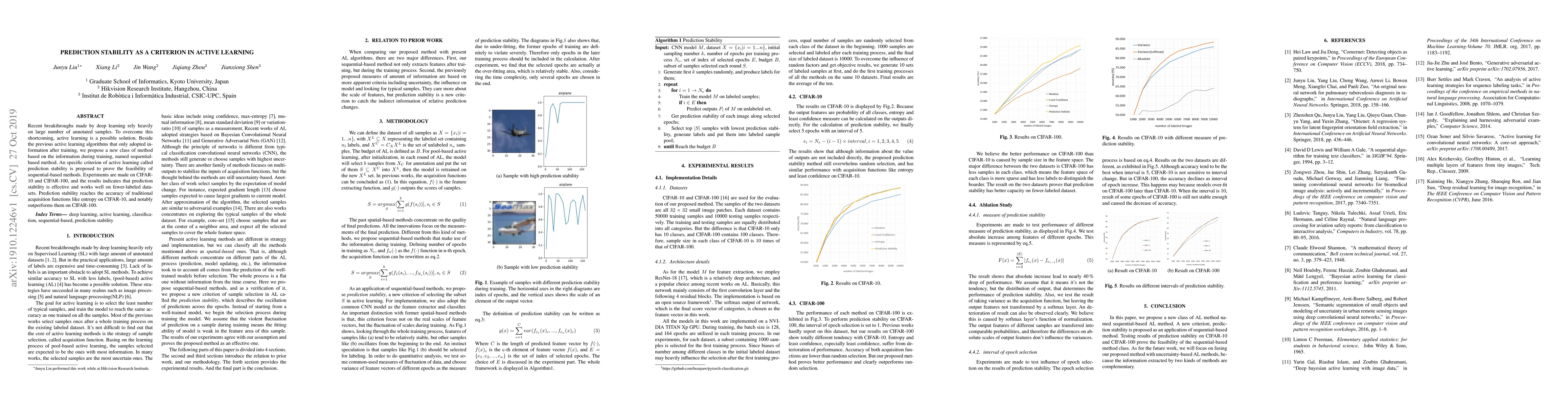 This paper proposes a new sequential-based active learning method using a prediction stability criterion during training, demonstrating its effectiveness on CIFAR-10 and CIFAR-100 datasets. It shows comparable or superior performance to traditional acquisition functions, especially on CIFAR-100 with fewer labeled samples.
