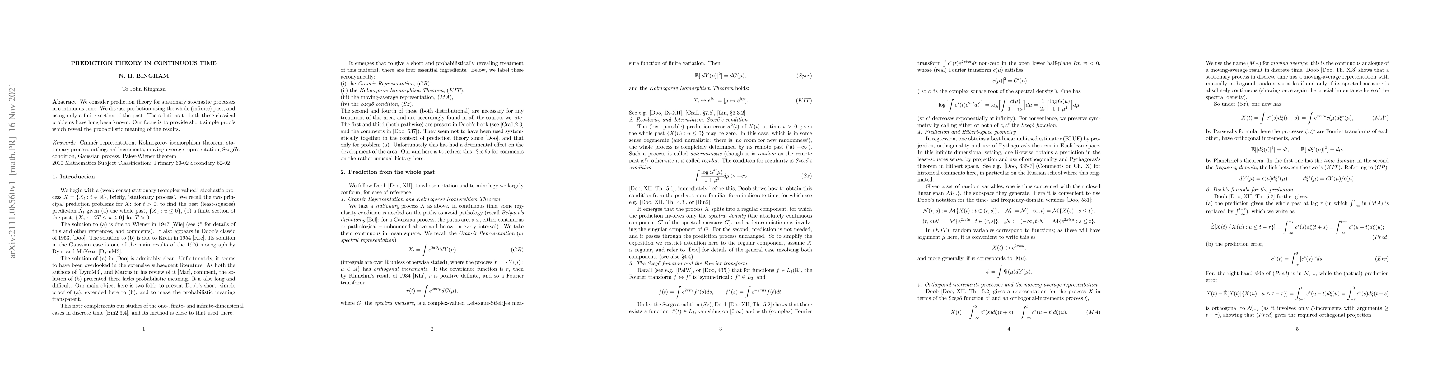 This paper provides simple proofs for prediction theory in continuous time, revealing the probabilistic meaning behind classical results for using whole and finite past.