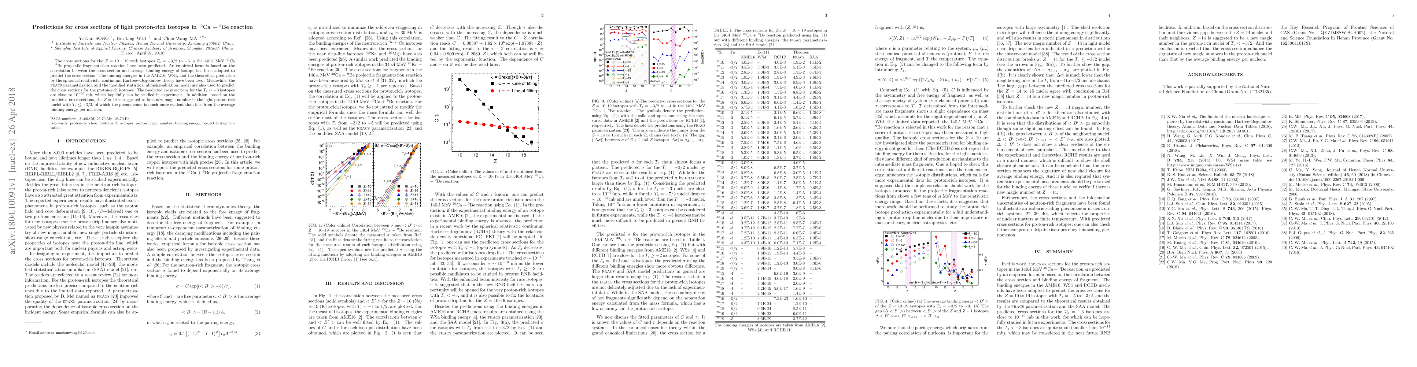 This paper predicts cross sections for light proton-rich isotopes in the $^{40}$Ca + $^{9}$Be reaction at 140$A$ MeV using empirical formulas and various theoretical models. The study suggests that $Z=14$ may be a new magic number in these nuclei, based on the predicted cross sections.