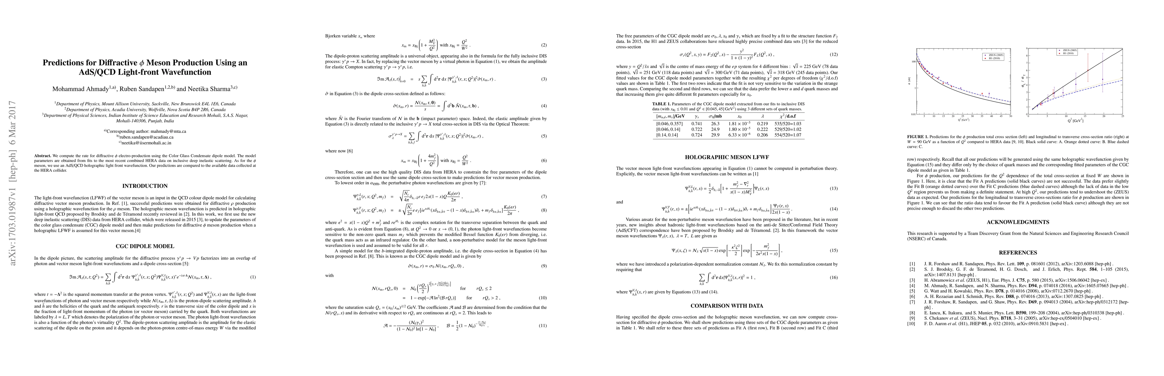 This paper calculates the rate for diffractive $\phi$ meson electro-production using the Color Glass Condensate dipole model and an AdS/QCD light-front wavefunction, comparing its predictions to HERA collider data. The model parameters are derived from the latest combined HERA inclusive deep inelastic scattering data.