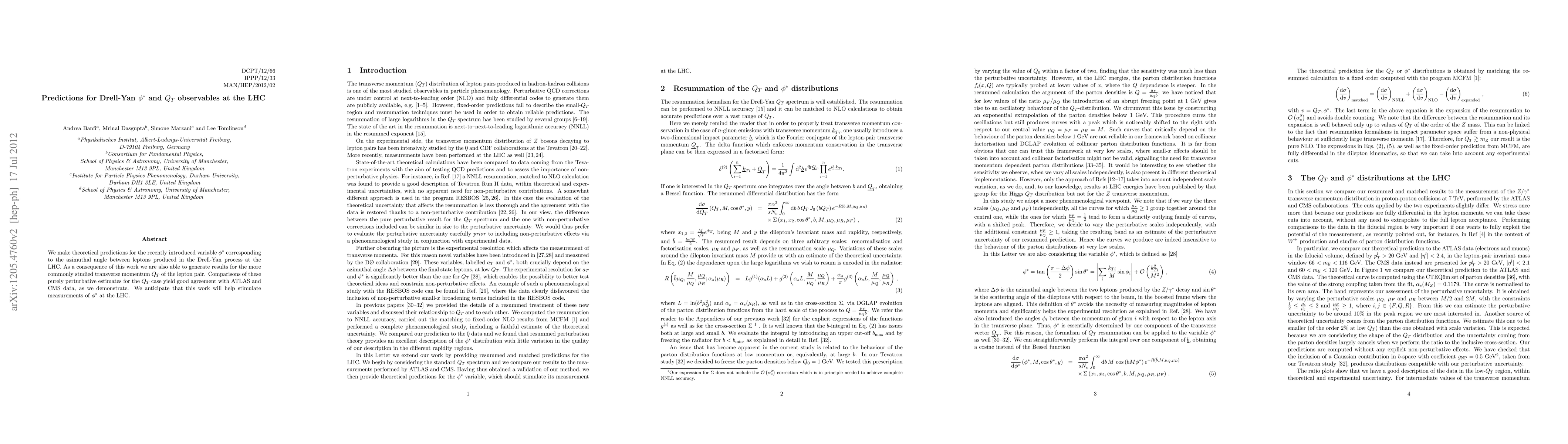 This paper presents theoretical predictions for the azimuthal angle variable \phi* in Drell-Yan processes at the LHC, alongside results for the transverse momentum Q_T. The predictions show good agreement with ATLAS and CMS data, aiming to stimulate further LHC measurements of \phi*.
