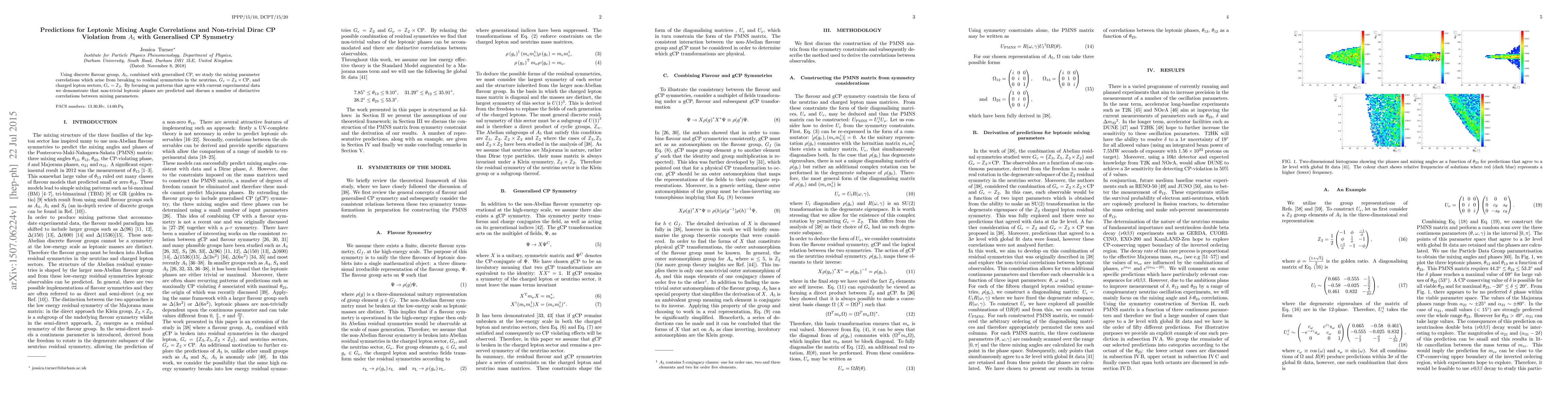 Using discrete flavour group, $A_5$, combined with generalised CP, we study the mixing parameter correlations which arise from breaking to residual symmetries in the neutrino, $G_{\nu}=\mathbb{Z}_2\times \text{CP}$, and charged lepton sectors, $G_{e}=\mathbb{Z}_2$. By focusing on patterns that agree with current experimental data we demonstrate that non-trivial leptonic phases are predicted and discuss a number of distinctive correlations between mixing parameters.