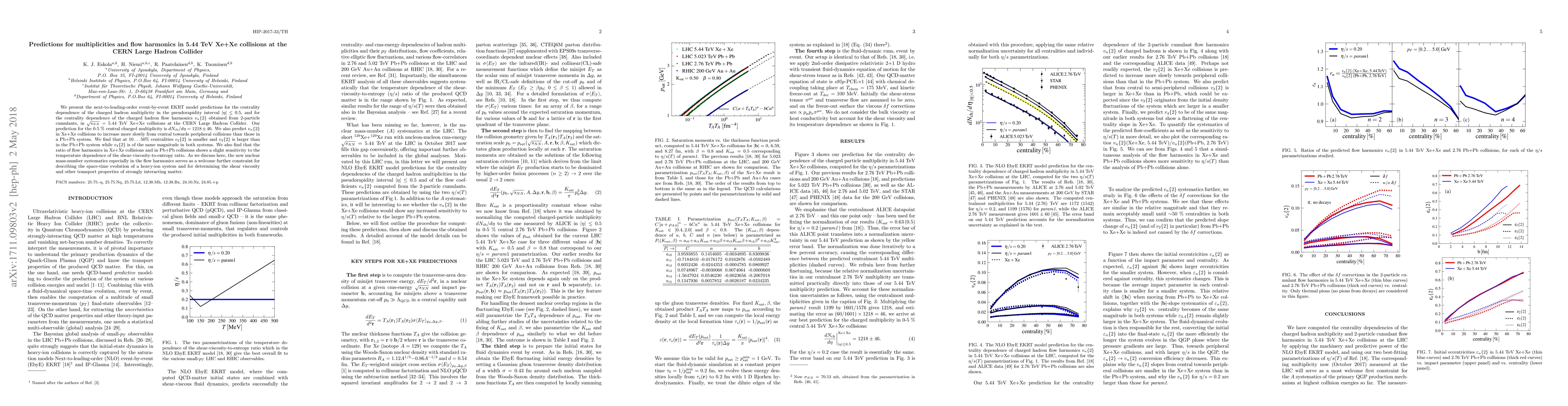 Researchers predict the charged hadron multiplicity and flow harmonics in 5.44 TeV Xe+Xe collisions at the CERN Large Hadron Collider, finding that flow harmonics increase more slowly from central to peripheral collisions compared to Pb+Pb system.