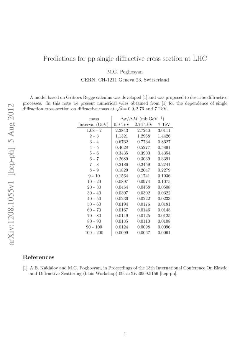 A model based on Gribov's Regge calculus was developed [1] and was proposed to describe diffractive processes. In this note we present numerical vales obtained from [1] for the dependence of single diffraction cross-section on diffractive mass at $\sqrt{s}$ = 0.9, 2.76 and 7 TeV.
