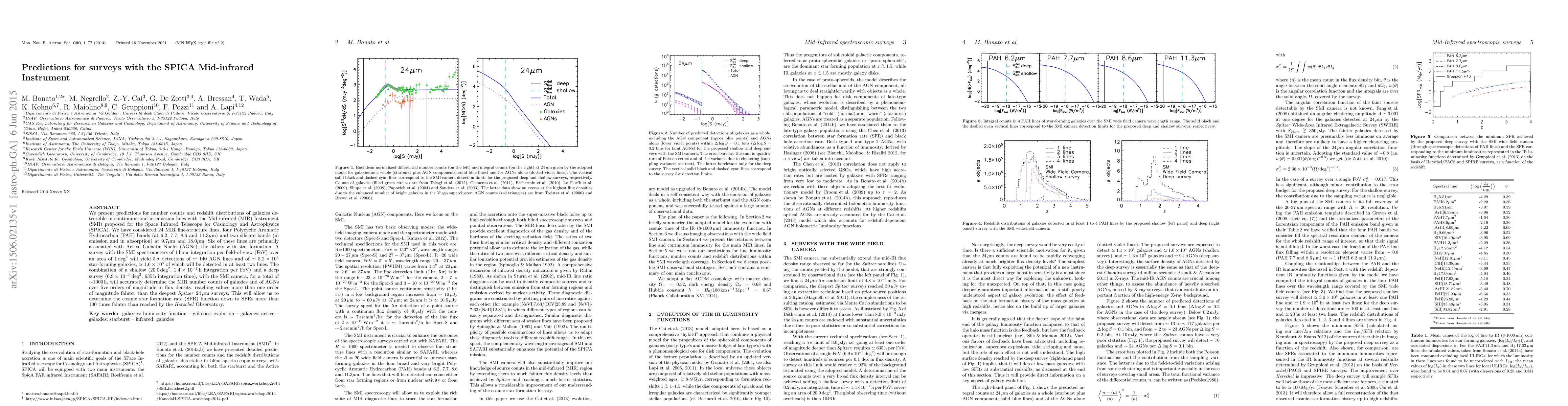 We present predictions for number counts and redshift distributions of galaxies detectable in continuum and in emission lines with the Mid-infrared (MIR) Instrument (SMI) proposed for the Space Infrared Telescope for Cosmology and Astrophysics (SPICA). We have considered 24 MIR fine-structure lines, four Polycyclic Aromatic Hydrocarbon (PAH) bands (at 6.2, 7.7, 8.6 and 11.3$\mu$m) and two silicate bands (in emission and in absorption) at 9.7$\mu$m and 18.0$\mu$m. Six of these lines are primarily associated with Active Galactic Nuclei (AGNs), the others with star formation. A survey with the SMI spectrometers of 1 hour integration per field-of-view (FoV) over an area of $1\,\hbox{deg}^2$ will yield $5\,\sigma$ detections of $\simeq 140$ AGN lines and of $\simeq 5.2\times10^{4}$ star-forming galaxies, $\simeq 1.6\times10^{4}$ of which will be detected in at least two lines. The combination of a shallow ($20.0\,\hbox{deg}^{2}$, $1.4\times10^{-1}$ h integration per FoV) and a deep survey ($6.9\times10^{-3}\,\hbox{deg}^{2}$, $635$ h integration time), with the SMI camera, for a total of $\sim$1000 h, will accurately determine the MIR number counts of galaxies and of AGNs over five orders of magnitude in flux density, reaching values more than one order of magnitude fainter than the deepest Spitzer $24\,\mu$m surveys. This will allow us to determine the cosmic star formation rate (SFR) function down to SFRs more than 100 times fainter than reached by the Herschel Observatory.