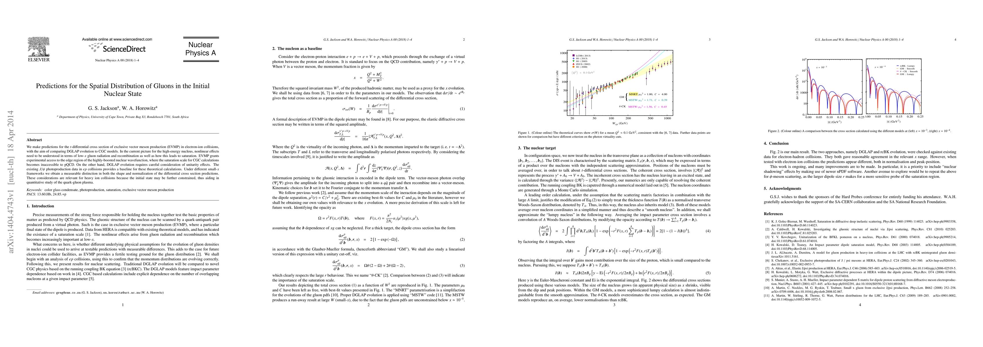 We make predictions for the t-differential cross section of exclusive vector meson production (EVMP) in electron-ion collisions, with the aim of comparing DGLAP evolution to CGC models. In the current picture for the high-energy nucleus, nonlinear effects need to be understood in terms of low-$x$ gluon radiation and recombination as well as how this leads to saturation. EVMP grants experimental access to the edge region of the highly-boosted nuclear wavefunction, where the saturation scale for CGC calculations becomes inaccessible to pQCD. On the other hand, DGLAP evolution requires careful consideration of unitarity effects. The existing $J/{\psi}$ photoproduction data in ep collisions provides a baseline for these theoretical calculations. Under different small-$x$ frameworks we obtain a measurable distinction in both the shape and normalization of the differential cross section predictions. These considerations are relevant for heavy ion collisions because the initial state may be further constrained, thus aiding in quantitative study of the quark-gluon plasma.