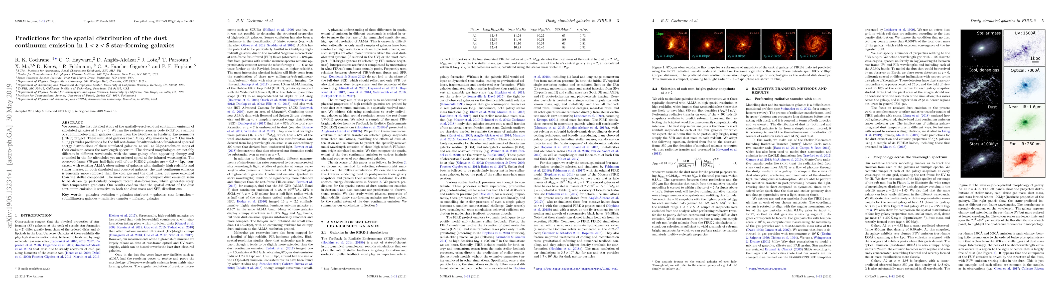 This study uses the SKIRT radiative transfer code on FIRE project simulations to model the spatially-resolved dust continuum emission in star-forming galaxies at redshifts 1<z<5. The findings reveal distinct morphologies across different wavelengths, with compact dust emission driven by recent star-formation, confirming the sensitivity of dust distribution to both dust mass and star formation rate.
