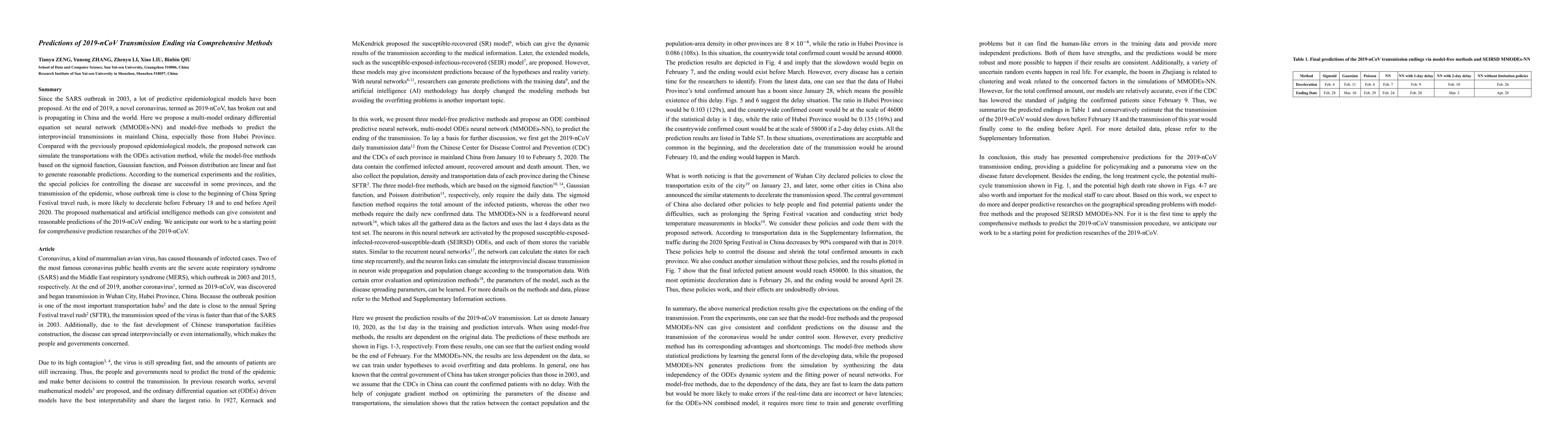 Since the SARS outbreak in 2003, a lot of predictive epidemiological models have been proposed. At the end of 2019, a novel coronavirus, termed as 2019-nCoV, has broken out and is propagating in China and the world. Here we propose a multi-model ordinary differential equation set neural network (MMODEs-NN) and model-free methods to predict the interprovincial transmissions in mainland China, especially those from Hubei Province. Compared with the previously proposed epidemiological models, the proposed network can simulate the transportations with the ODEs activation method, while the model-free methods based on the sigmoid function, Gaussian function, and Poisson distribution are linear and fast to generate reasonable predictions. According to the numerical experiments and the realities, the special policies for controlling the disease are successful in some provinces, and the transmission of the epidemic, whose outbreak time is close to the beginning of China Spring Festival travel rush, is more likely to decelerate before February 18 and to end before April 2020. The proposed mathematical and artificial intelligence methods can give consistent and reasonable predictions of the 2019-nCoV ending. We anticipate our work to be a starting point for comprehensive prediction researches of the 2019-nCoV.