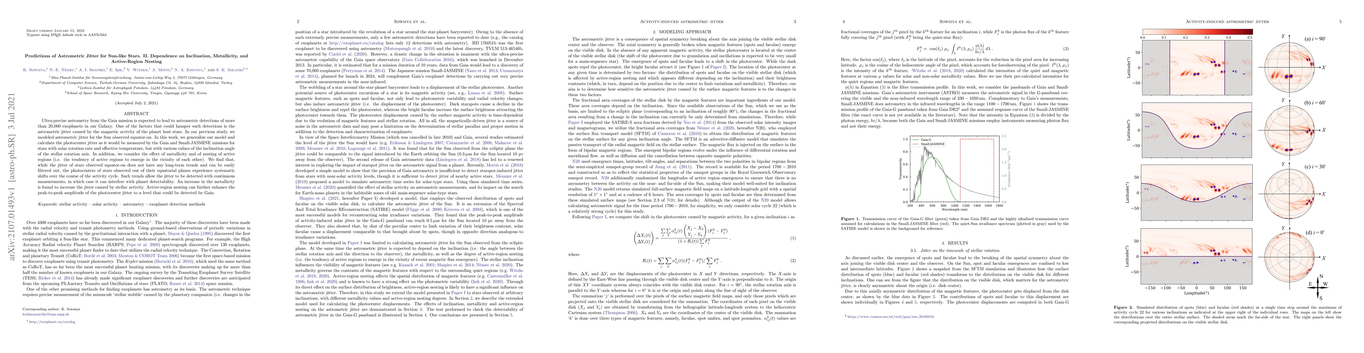 This paper generalizes a model for predicting astrometric jitter in Sun-like stars, finding that stars observed out of their equatorial planes experience systematic shifts due to magnetic activity. Increased metallicity and active-region nesting enhance the jitter, potentially interfering with exoplanet detections by missions like Gaia.