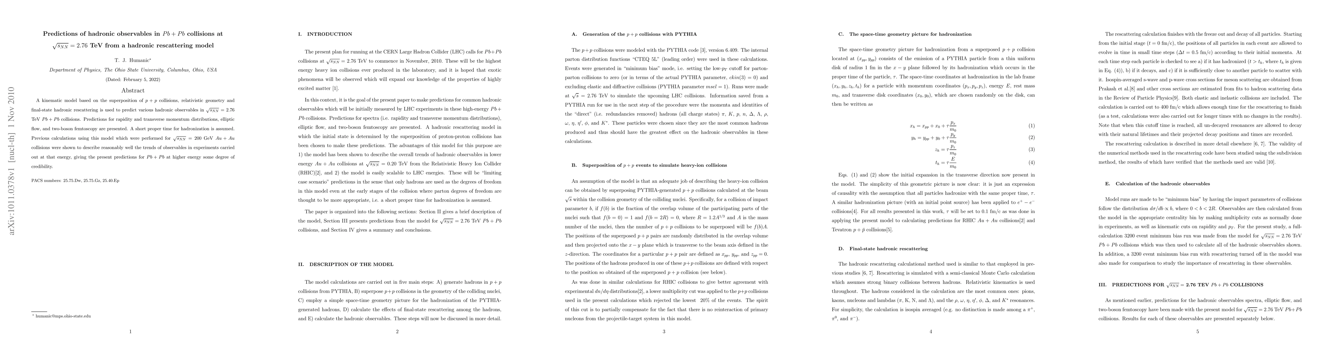 This study uses a hadronic rescattering model to predict key observables in Pb+Pb collisions at ∀sNN = 2.76 TeV, including rapidity and transverse momentum distributions and two-boson femtoscopy.
