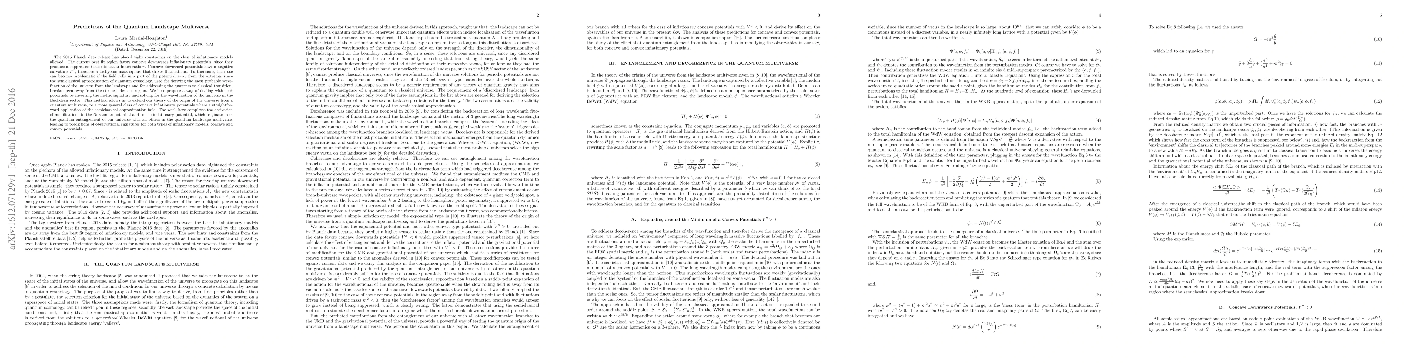 The 2015 Planck data release has placed tight constraints on the class of in ationary models allowed. The current best fit region favors concave downwards in ationary potentials, since they produce a suppressed tensor to scalar index ratio r. Concave downward potentials have a negative curvature V"<0, therefore a tachyonic mass square that drives fluctuations. Furthermore, their use can become problematic if the field rolls in a part of the potential away from the extrema, since the semiclassical approximation of quantum cosmology, used for deriving the most probable wavefunction of the universe from the landscape and for addressing the quantum to classical transition, breaks down away from the steepest descent region. We here propose a way of dealing with such potentials by inverting the metric signature and solving for the wavefunction of the universe in the Euclidean sector. This method allows us to extend our theory of the origin of the universe from a quantum multiverse, to a more general class of concave inflationary potentials where a straightforward application of the semiclassical approximation fails. The work here completes the derivation of modifications to the Newtonian potential and to the inflationary potential, which originate from the quantum entanglement of our universe with all others in the quantum landscape multiverse, leading to predictions of observational signatures for both types of in ationary models, concave and convex potentials.