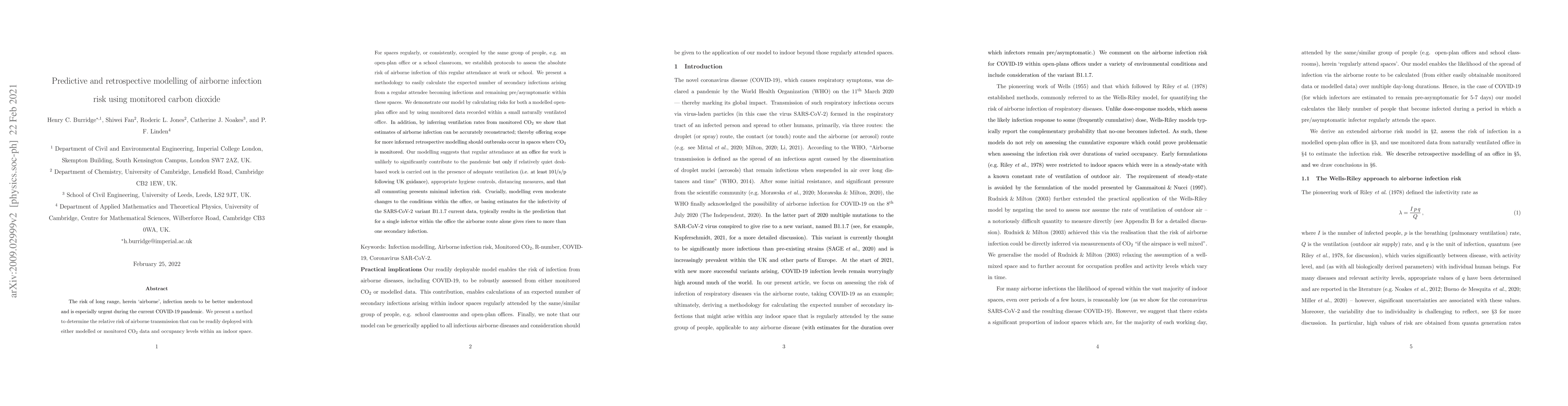 This paper proposes a method for assessing the airborne infection risk in regularly occupied indoor spaces using monitored carbon dioxide levels and occupancy data. The model predicts secondary infections from a single infectious attendee and suggests that adequate ventilation and hygiene controls are crucial in minimizing risk, especially in open-plan offices.