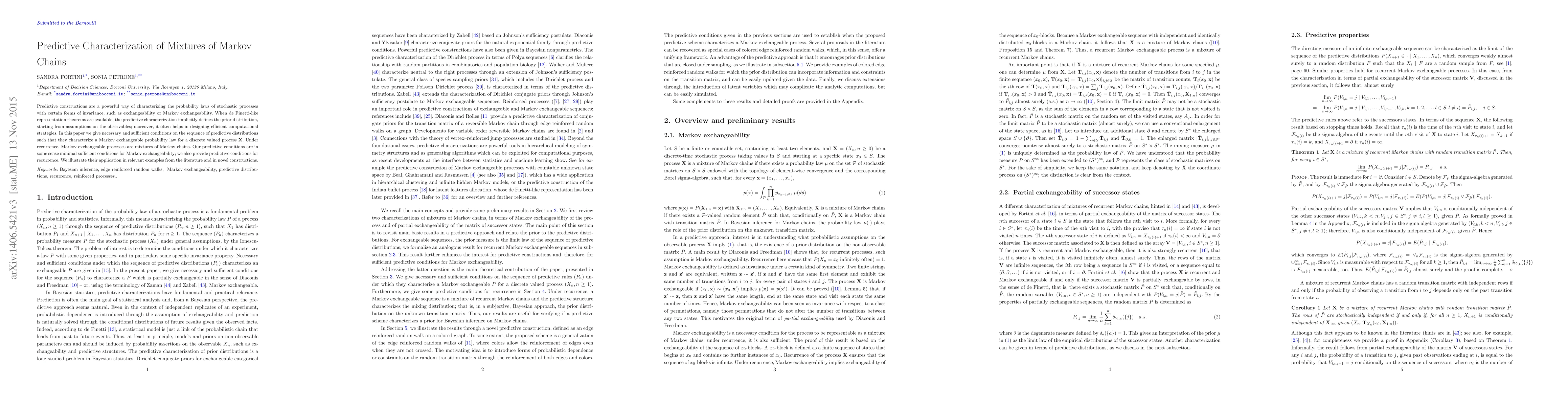 This paper establishes necessary and sufficient conditions for predictive distributions to characterize Markov exchangeable probability laws for discrete-valued processes. It provides minimal sufficient conditions for Markov exchangeability and recurrence, aiding Bayesian inference on Markov chain transition matrices, and demonstrates applications through examples.