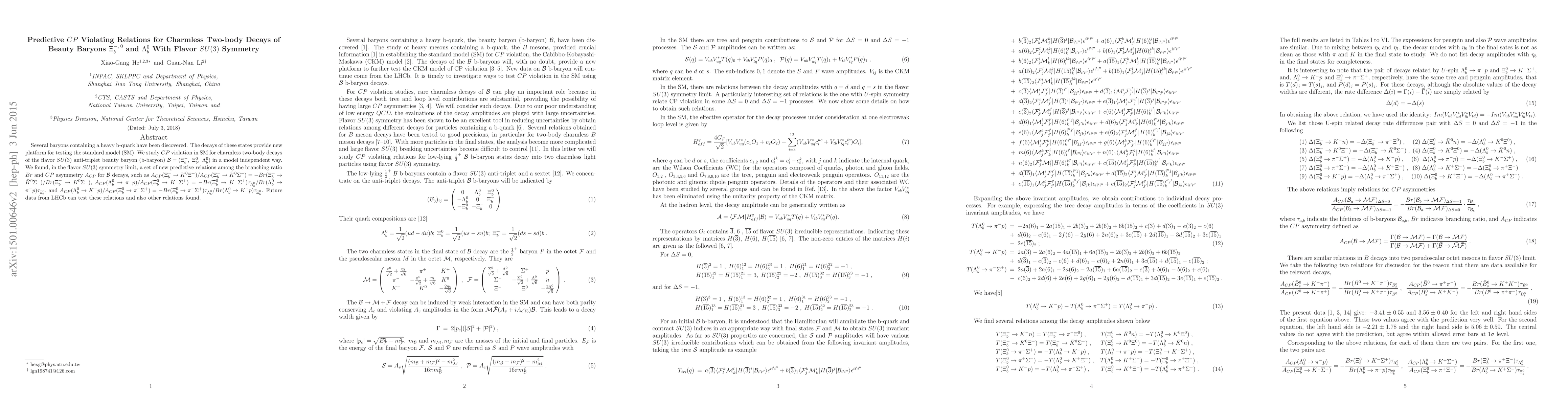 Several baryons containing a heavy b-quark have been discovered. The decays of these states provide new platform for testing the standard model (SM). We study $CP$ violation in SM for charmless two-body decays of the flavor $SU(3)$ anti-triplet beauty baryon (b-baryon) ${\cal B} = (\Xi^-_b,\;\Xi^0_b,\;\Lambda_b^0)$ in a model independent way. We found, in the flavor $SU(3)$ symmetry limit, a set of new predictive relations among the branching ratio $Br$ and $CP$ asymmetry $A_{CP}$ for $\cal B$ decays, such as $A_{CP}(\Xi_b^-\to K^0 \Xi^-)/A_{CP}(\Xi_b^-\to \bar K^0 \Sigma^-) = - Br(\Xi_b^- \to \bar K^0 \Sigma^-)/Br(\Xi_b^- \to K^0 \Sigma^-)$, $A_{CP}(\Lambda_b^0 \to \pi^- p)/A_{CP} (\Xi^0_b \to K^- \Sigma^+) = -Br(\Xi^0_b \to K^- \Sigma^+)\tau_{\Lambda_b^0}/Br(\Lambda_b^0 \to \pi^- p)\tau_{\Xi^0_b}$,and $A_{CP}(\Lambda_b^0 \to K^- p)/ A_{CP} (\Xi^0_b \to \pi^- \Sigma^+) = -Br(\Xi^0_b \to \pi^- \Sigma^+)\tau_{\Lambda_b^0}/ Br(\Lambda_b^0 \to K^- p)\tau_{\Xi^0_b}$. Future data from LHCb can test these relations and also other relations found.