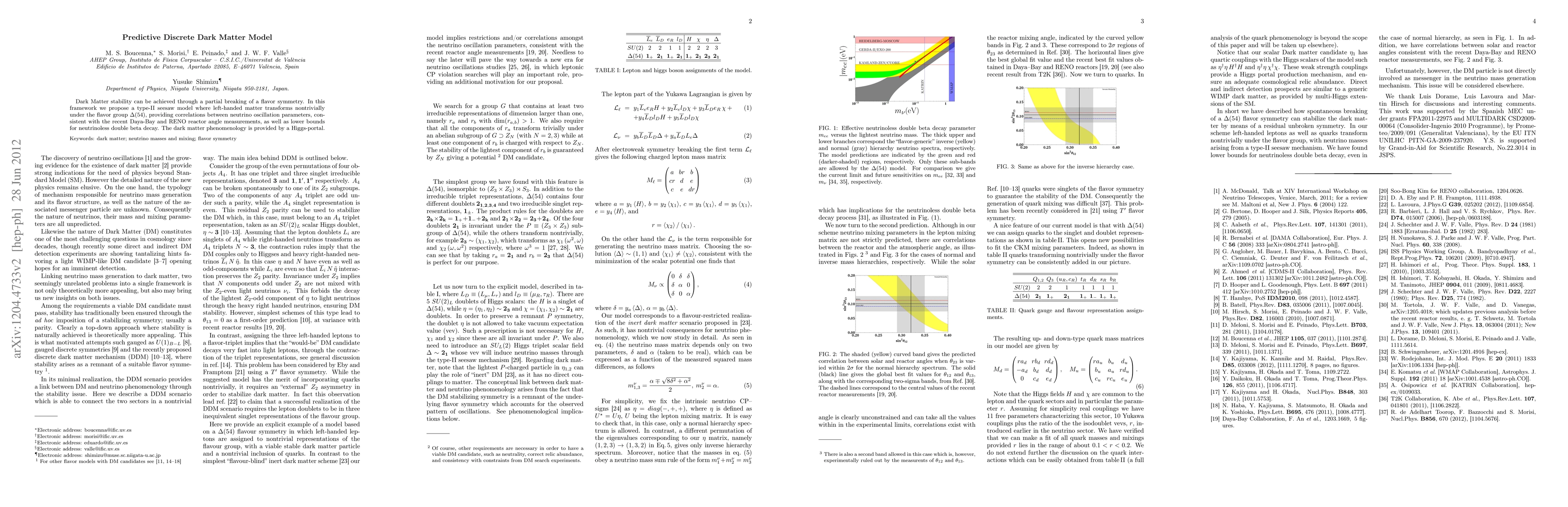 Dark Matter stability can be achieved through a partial breaking of a flavor symmetry. In this framework we propose a type-II seesaw model where left-handed matter transforms nontrivially under the flavor group Delta(54), providing correlations between neutrino oscillation parameters, consistent with the recent Daya-Bay and RENO reactor angle measurements, as well as lower bounds for neutrinoless double beta decay. The dark matter phenomenology is provided by a Higgs-portal.