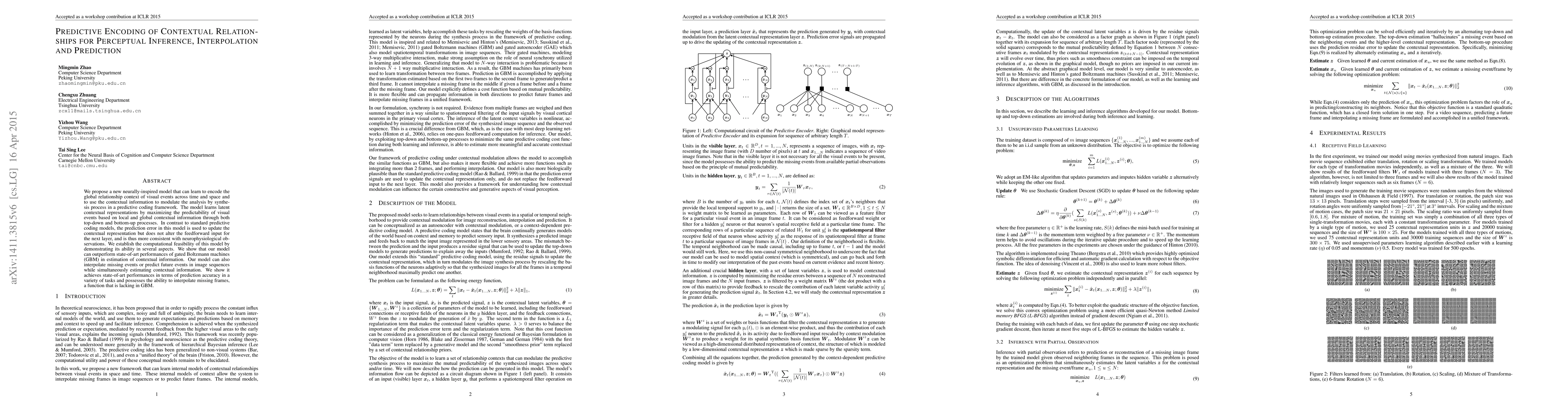 This paper introduces a neurally-inspired model for encoding contextual relationships in visual events, enhancing perceptual inference, interpolation, and prediction. The model updates contextual representations based on prediction error without altering feedforward inputs, achieving state-of-the-art performance in contextual information estimation and frame interpolation compared to gated Boltzmann machines.