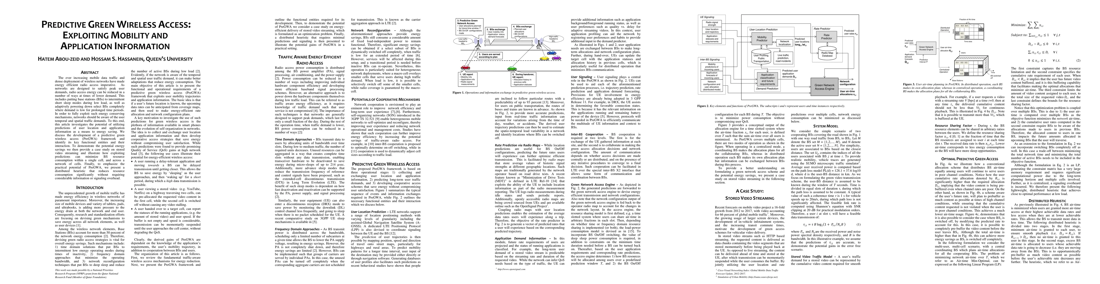The ever increasing mobile data traffic and dense deployment of wireless networks have made energy efficient radio access imperative. As networks are designed to satisfy peak user demands, radio access energy can be reduced in a number of ways at times of lower demand. This includes putting base stations (BSs) to intermittent short sleep modes during low load, as well as adaptively powering down select BSs completely where demand is low for prolonged time periods. In order to fully exploit such energy conserving mechanisms, networks should be aware of the user temporal and spatial traffic demands. To this end, this article investigates the potential of utilizing predictions of user location and application information as a means to energy saving. We discuss the development of a predictive green wireless access (PreGWA) framework and identify its key functional entities and their interaction. To demonstrate the potential energy savings we then provide a case study on stored video streaming and illustrate how exploiting predictions can minimize BS resource consumption within a single cell, and across a network of cells. Finally, to emphasize the practical potential of PreGWA, we present a distributed heuristic that reduces resource consumption significantly without requiring considerable information or signaling overhead.