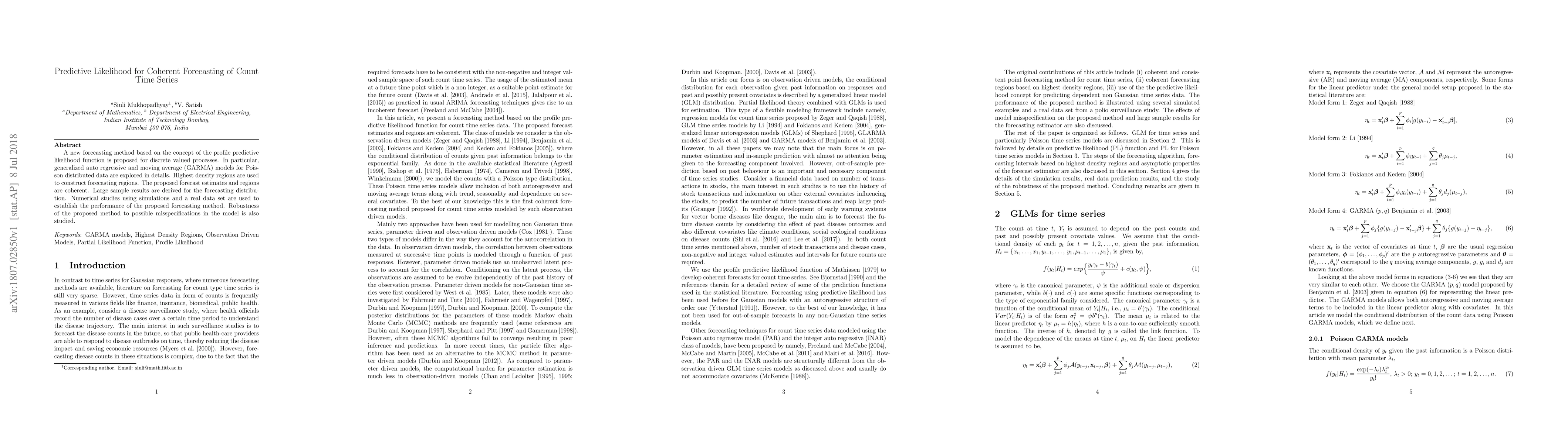 A new forecasting method based on the concept of the profile predictive the likelihood function is proposed for discrete-valued processes. In particular, generalized autoregressive and moving average (GARMA) models for Poisson distributed data are explored in details. Highest density regions are used to construct forecasting regions. The proposed forecast estimates and regions are coherent. Large sample results are derived for the forecasting distribution. Numerical studies using simulations and a real data set are used to establish the performance of the proposed forecasting method. Robustness of the proposed method to possible misspecification in the model is also studied.