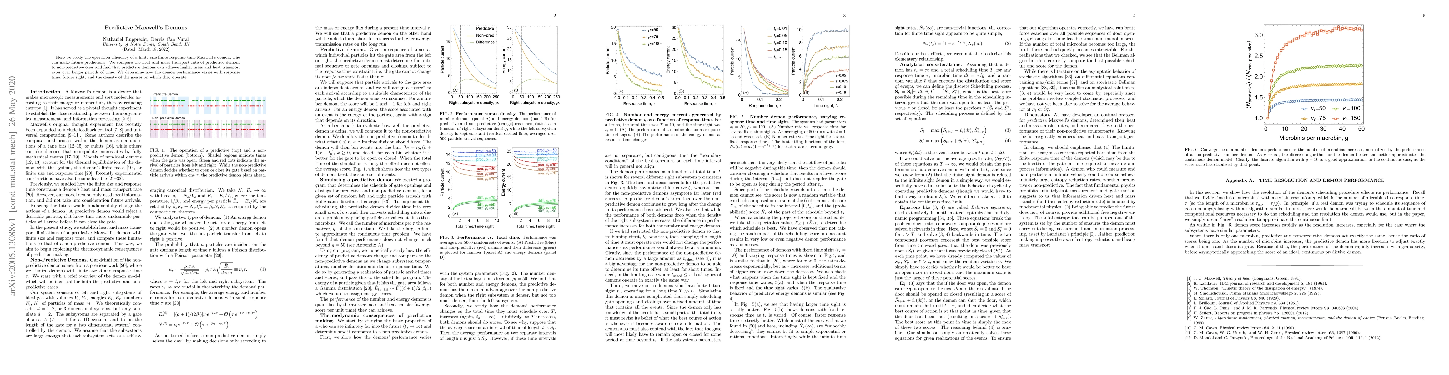This paper investigates the efficiency of predictive Maxwell's demons, finding they achieve higher heat and mass transport rates compared to non-predictive ones. The study examines how demon performance is influenced by response time, predictive capabilities, and gas density.