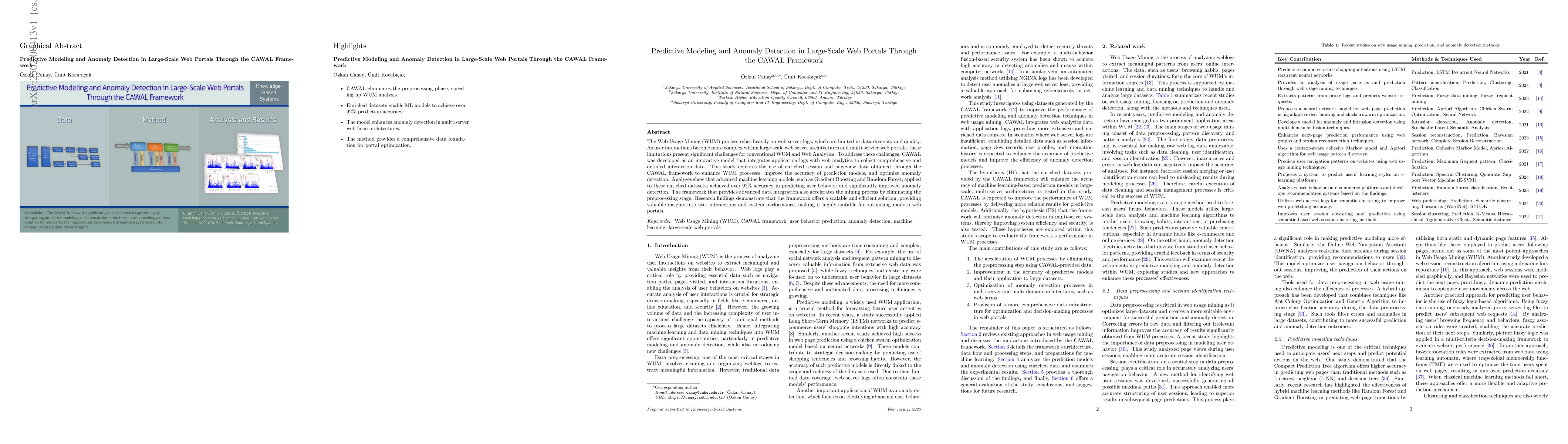 This study introduces the CAWAL framework for predictive modeling and anomaly detection in web portals, using enriched session and page view data to enhance data diversity and quality. Advanced machine learning models achieved over 92% accuracy in predicting user behavior and significantly improved anomaly detection, offering detailed insights for improving web portal efficiency.