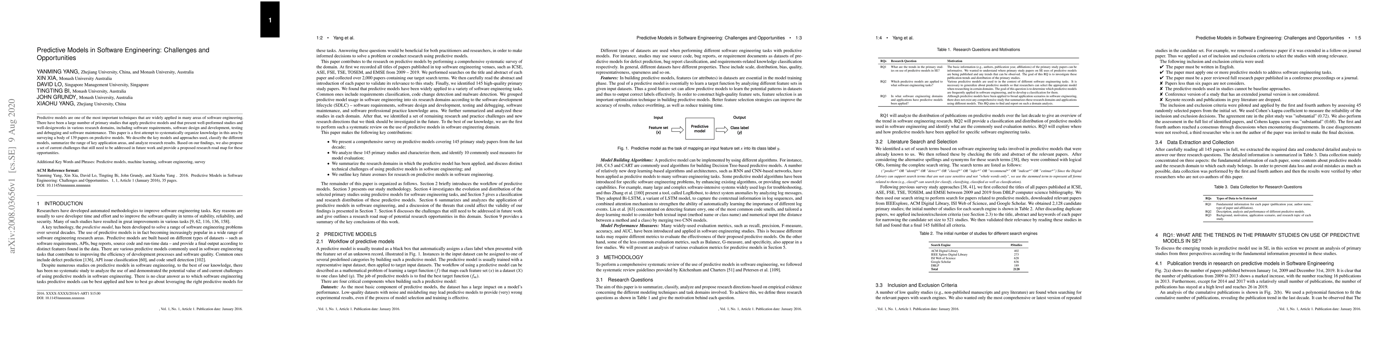 This paper systematically surveys 139 studies on predictive models in software engineering, classifying key models and their applications across various domains. It identifies current challenges and proposes a future research roadmap to address these issues.