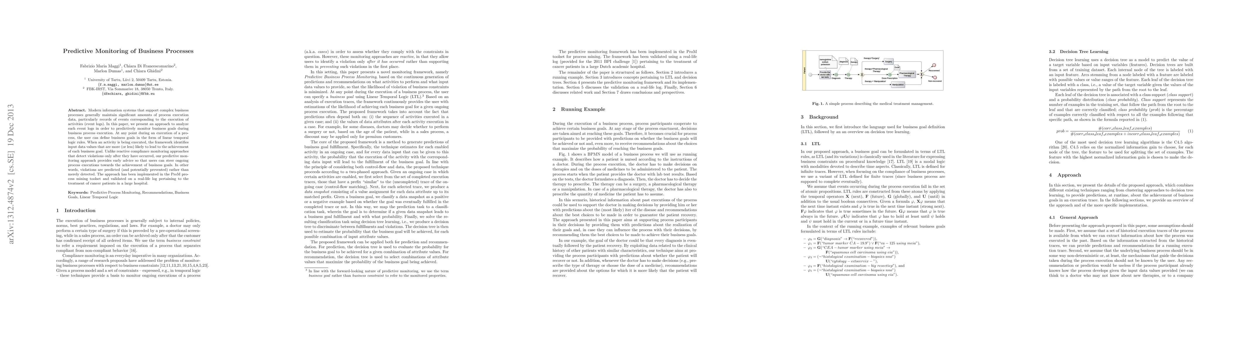 The paper introduces a predictive business process monitoring framework that combines trace filtering, classification, and decision tree learning to provide real-time predictions and recommendations based on LTL rules.