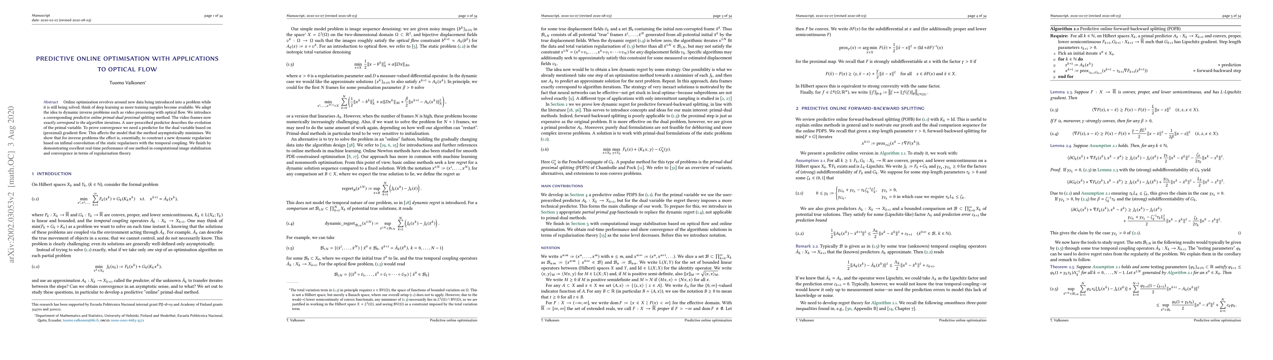 Researchers developed a predictive online optimisation method for dynamic inverse problems like optical flow, achieving real-time performance in image stabilisation with excellent convergence results.