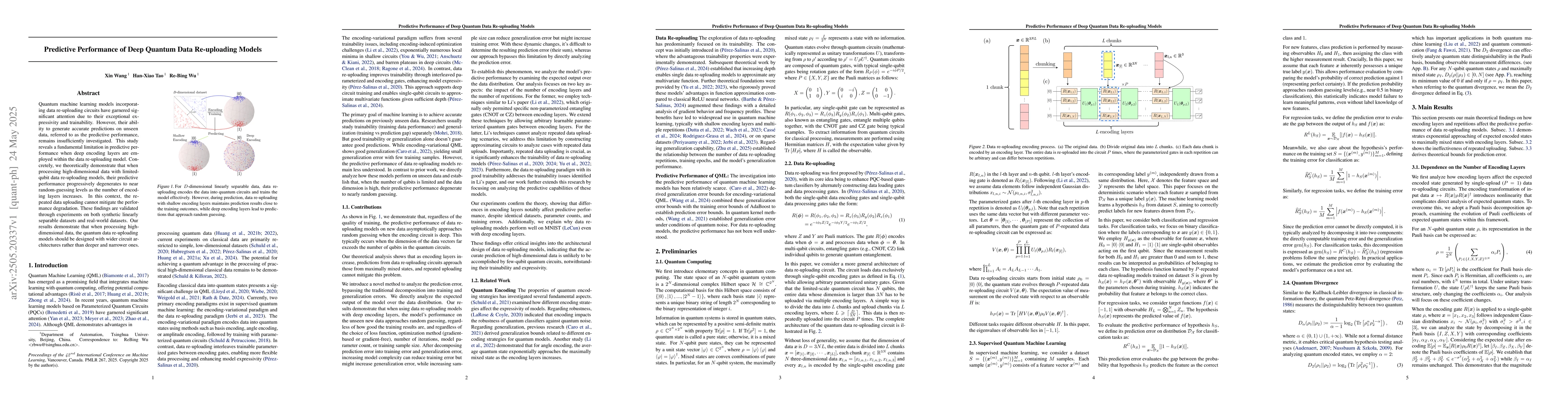 The study theoretically demonstrates and validates through experiments the predictive performance of deep quantum data re-uploading models, focusing on high-dimensional data with limited qubits.