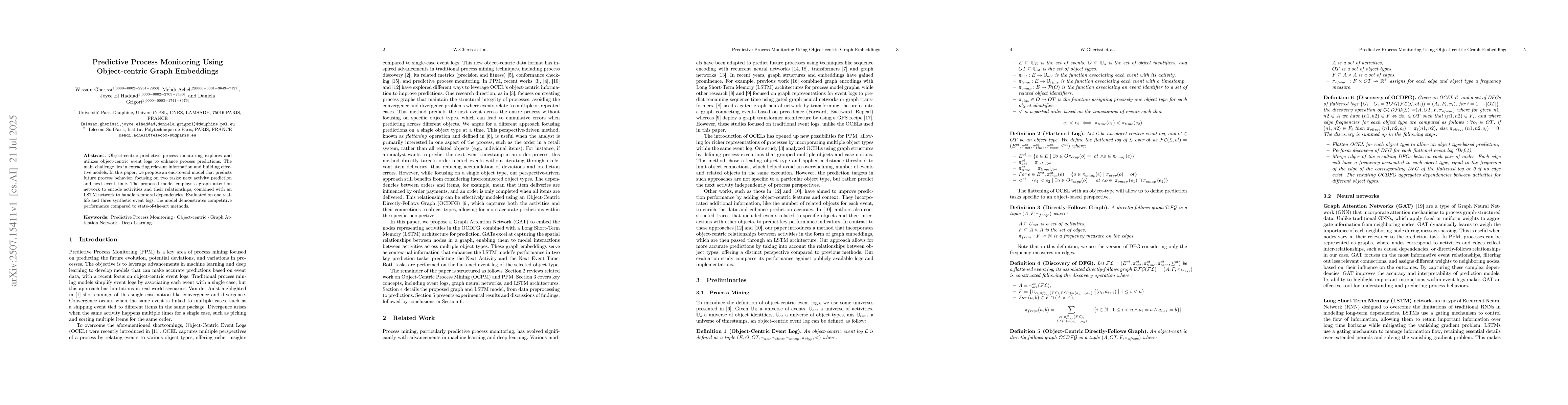 The paper proposes an end-to-end model combining Graph Attention Network (GAT) with LSTM layers for predicting future behavior in flattened event logs, focusing on specific object types using Object-Centric Directly-Follows Graph (OCDFG).