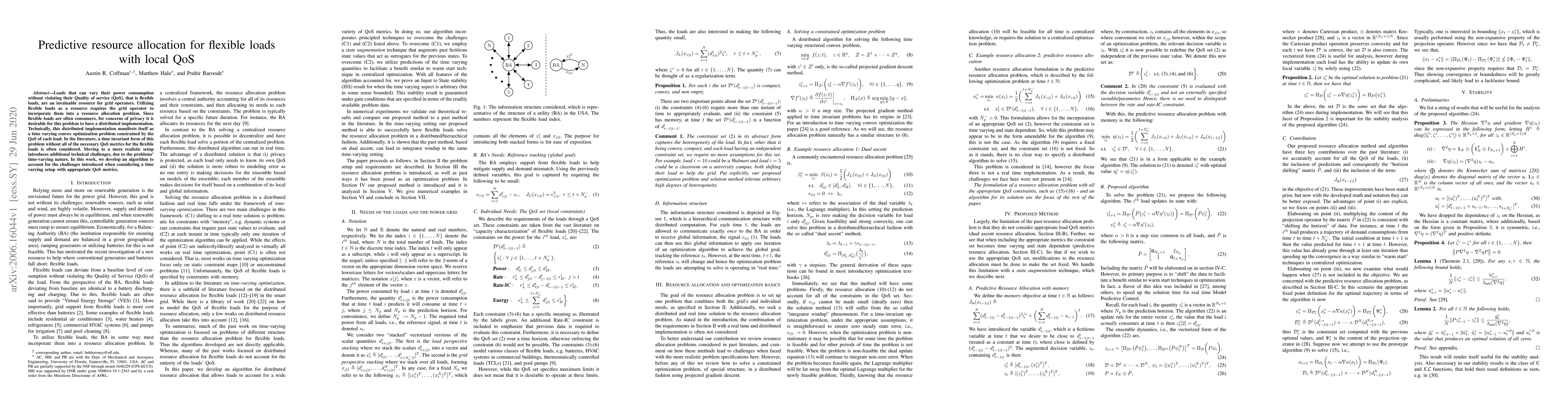This paper proposes an algorithm for predictive resource allocation of flexible loads, which can adjust their power consumption while maintaining Quality of Service (QoS). It addresses the technical challenges of implementing a distributed, time-varying convex optimization problem to incorporate these loads into grid operations.