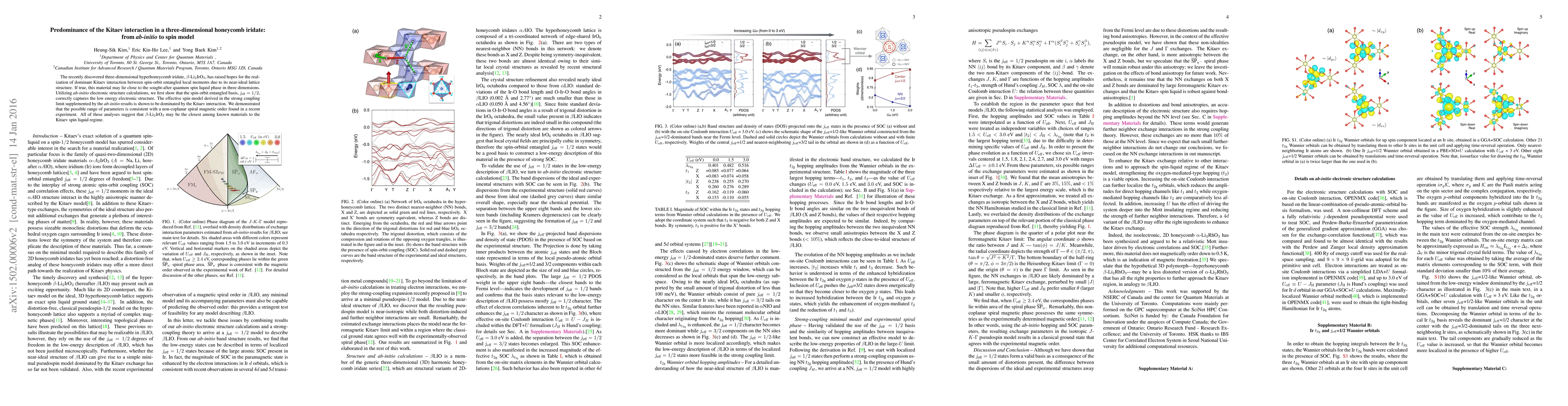 This paper demonstrates through ab-initio calculations and spin model derivations that the three-dimensional iridate $\beta$-Li$_2$IrO$_3$ exhibits a dominant Kitaev interaction, suggesting it is a prime candidate for realizing a quantum spin liquid phase in three dimensions. The findings align with experimental observations of a non-coplanar spiral magnetic order.