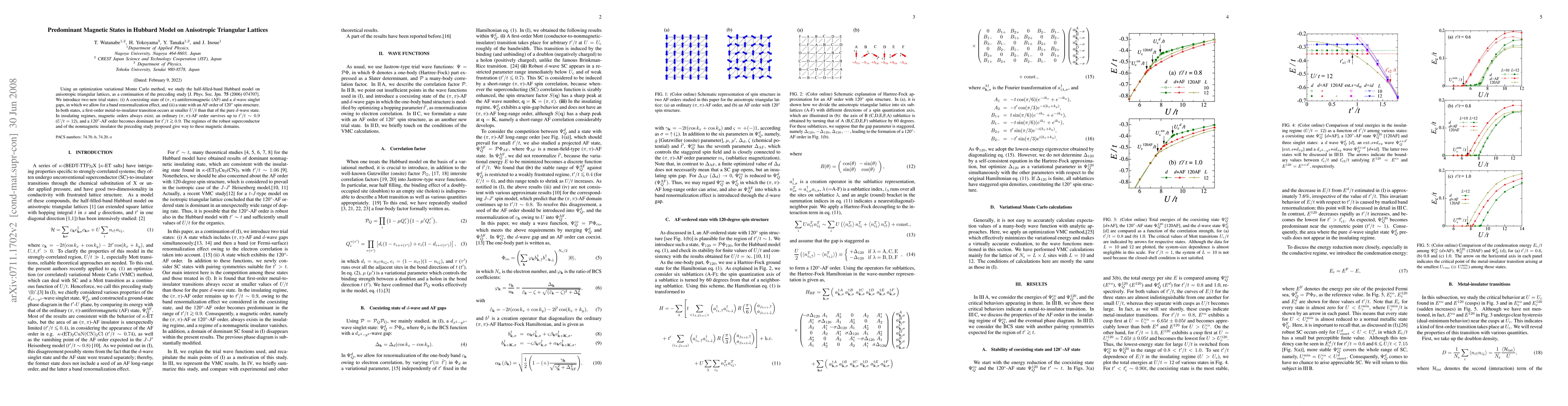 Using an optimization variational Monte Carlo method, we study the half-filled-band Hubbard model on anisotropic triangular lattices, as a continuation of the preceding study [J. Phys. Soc. Jpn 75, 074707 (2006)]. We introduce two new trial states: (i) A coexisting state of (\pi,\pi)-antiferromagnetic (AF) and a d-wave singlet gaps, in which we allow for a band renormalization effect, and (ii) a state with an AF order of 120^\circ spin structure. In both states, a first-order metal-to-insulator transition occurs at smaller U/t than that of the pure d-wave state. In insulating regimes, magnetic orders always exist; an ordinary (\pi,\pi)-AF order survives up to t'/t\sim 0.9 (U/t=12), and a 120^\circ-AF order becomes dominant for t'/t \gsim 0.9. The regimes of the robust superconductor and of the nonmagnetic insulator the preceding study proposed give way to these magnetic domains.
