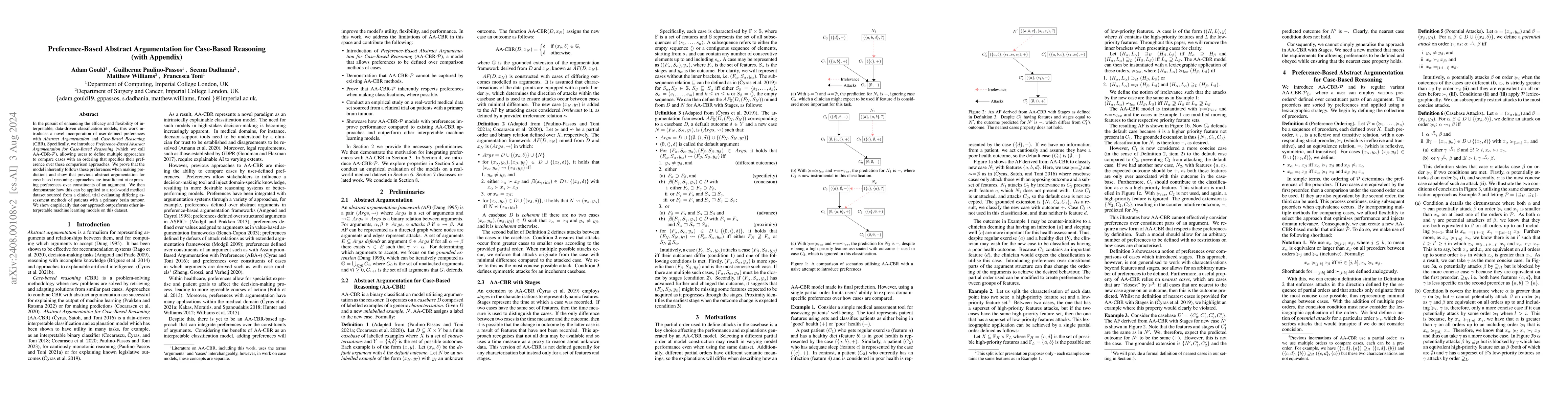 In the pursuit of enhancing the efficacy and flexibility of interpretable, data-driven classification models, this work introduces a novel incorporation of user-defined preferences with Abstract Argumentation and Case-Based Reasoning (CBR). Specifically, we introduce Preference-Based Abstract Argumentation for Case-Based Reasoning (which we call AA-CBR-P), allowing users to define multiple approaches to compare cases with an ordering that specifies their preference over these comparison approaches. We prove that the model inherently follows these preferences when making predictions and show that previous abstract argumentation for case-based reasoning approaches are insufficient at expressing preferences over constituents of an argument. We then demonstrate how this can be applied to a real-world medical dataset sourced from a clinical trial evaluating differing assessment methods of patients with a primary brain tumour. We show empirically that our approach outperforms other interpretable machine learning models on this dataset.