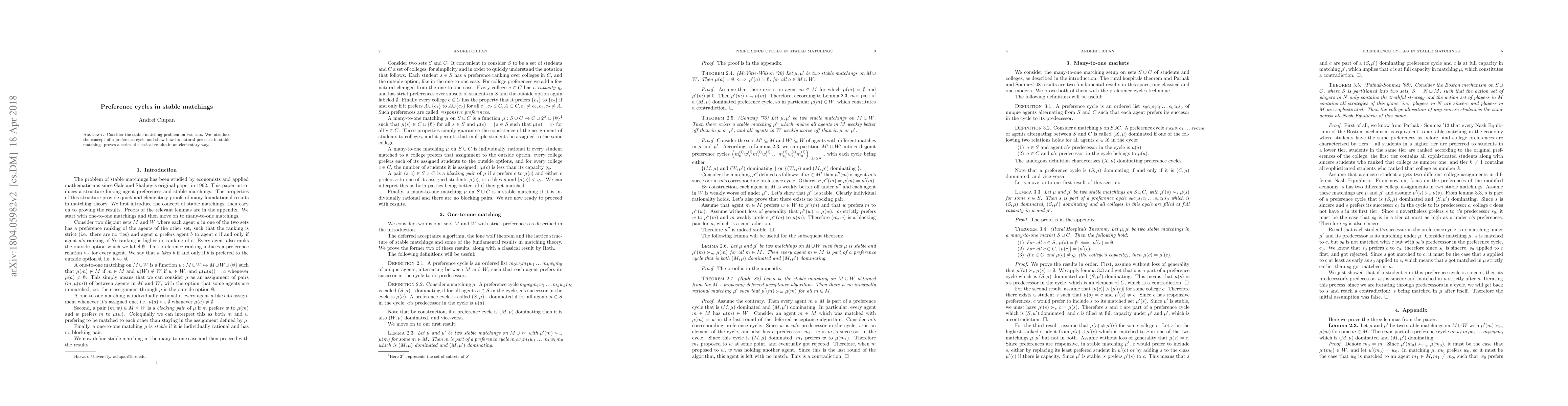 Summary: This paper explores the stable matching problem, introducing the concept of preference cycles to demonstrate classical results in a simplified manner, revealing the inherent complexity within stable matchings.