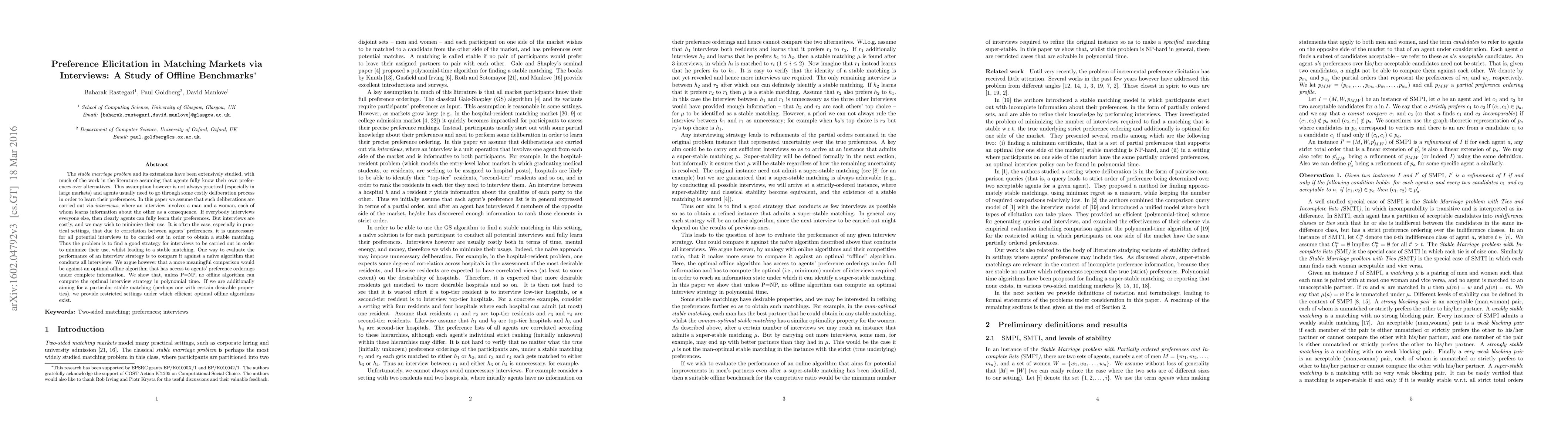 Researchers study how to minimize costly interviews in matching markets to find stable pairings, concluding that no offline algorithm can compute optimal interview strategies efficiently unless P=NP, but restricted settings provide solutions.