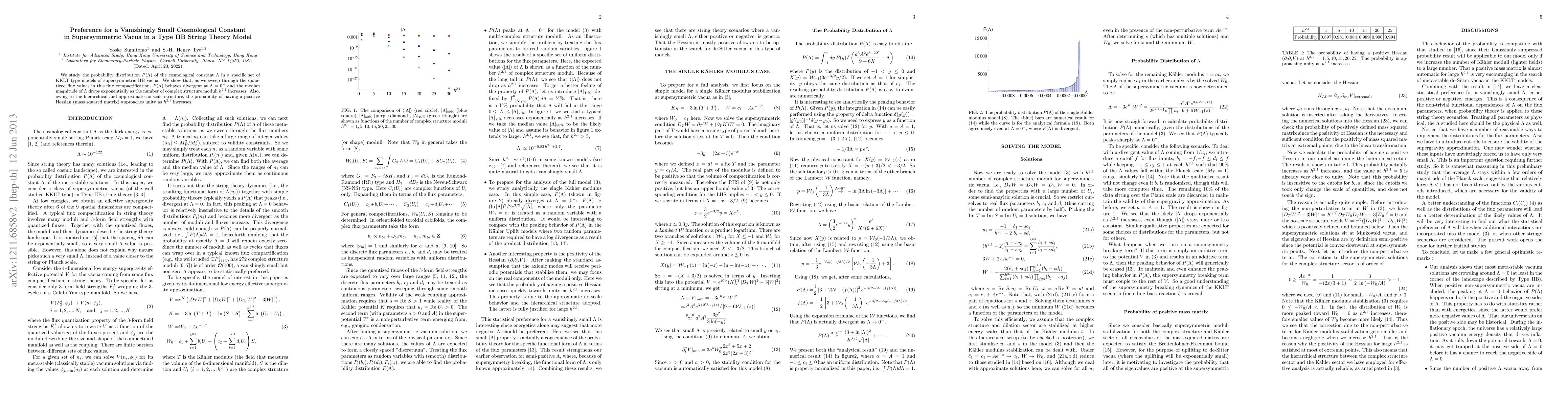 We study the probability distribution P(\Lambda) of the cosmological constant \Lambda in a specific set of KKLT type models of supersymmetric IIB vacua. We show that, as we sweep through the quantized flux values in this flux compactification, P(\Lambda) behaves divergent at \Lambda =0^- and the median magnitude of \Lambda drops exponentially as the number of complex structure moduli h^{2,1} increases. Also, owing to the hierarchical and approximate no-scale structure, the probability of having a positive Hessian (mass squared matrix) approaches unity as h^{2,1} increases.