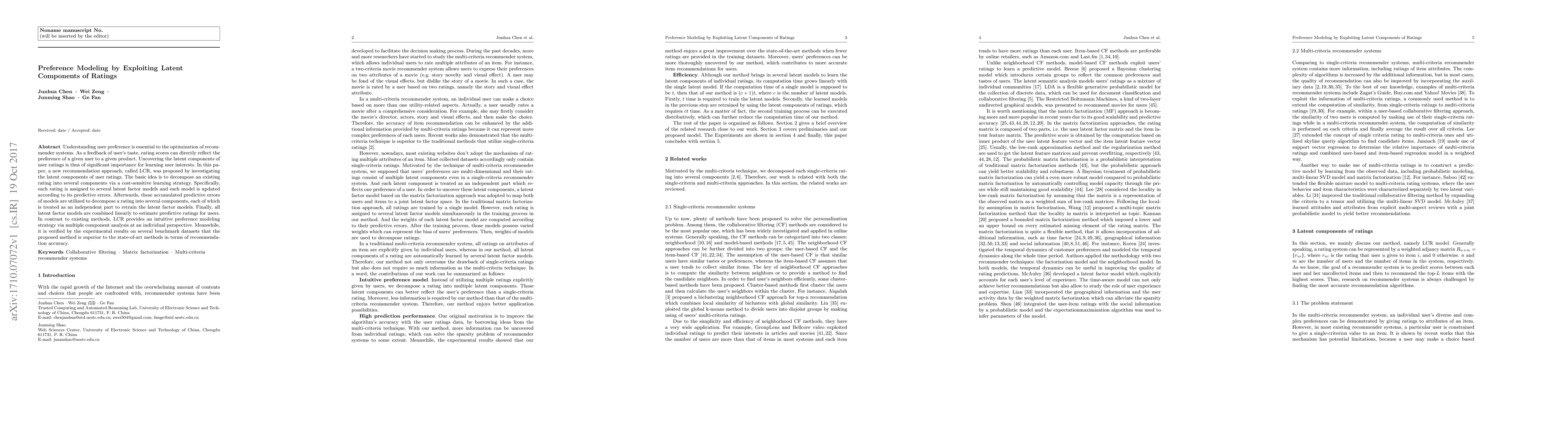This paper proposes LCR, a novel recommendation approach that decomposes user ratings into latent components using a cost-sensitive learning strategy. The method enhances preference modeling by analyzing individual rating components and retrains latent factor models, ultimately improving recommendation accuracy over existing methods.