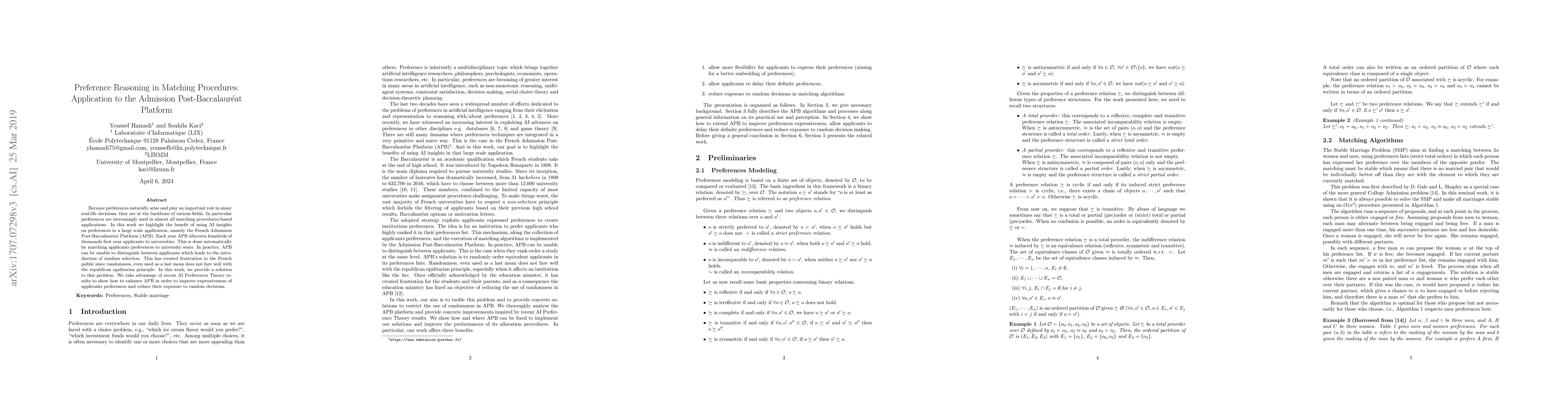 Because preferences naturally arise and play an important role in many real-life decisions, they are at the backbone of various fields. In particular preferences are increasingly used in almost all matching procedures-based applications. In this work we highlight the benefit of using AI insights on preferences in a large scale application, namely the French Admission Post-Baccalaureat Platform (APB). Each year APB allocates hundreds of thousands first year applicants to universities. This is done automatically by matching applicants preferences to university seats. In practice, APB can be unable to distinguish between applicants which leads to the introduction of random selection. This has created frustration in the French public since randomness, even used as a last mean does not fare well with the republican egalitarian principle. In this work, we provide a solution to this problem. We take advantage of recent AI Preferences Theory results to show how to enhance APB in order to improve expressiveness of applicants preferences and reduce their exposure to random decisions.